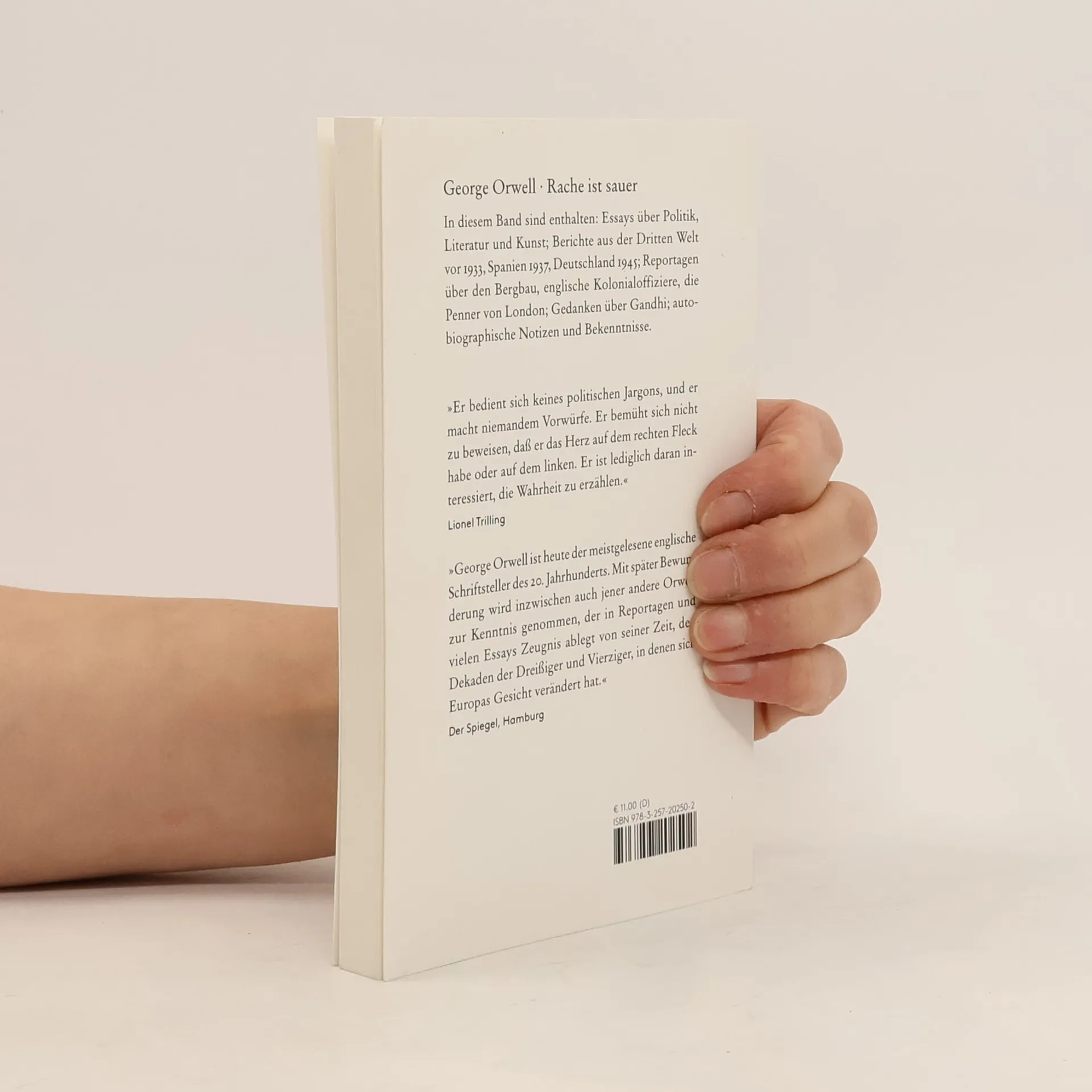 Dieser Band enthält: Essays über Politik, Literatur und Kunst; Berichte aus der Dritten Welt vor 1933, Spanien 1937, Deutschland 1945; Reportagen über den Bergbau, englische Kolonialoffiziere, die Penner von London; autobiographische Notizen und Bekenntnisse.