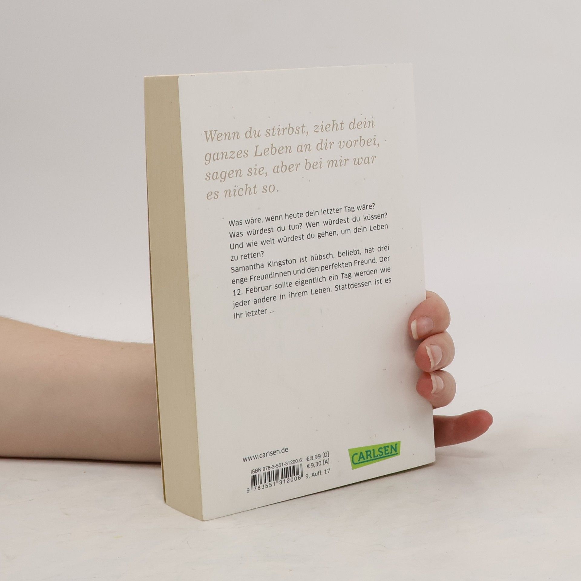 Das Buch zum Film - ab dem 1. Juni 2017 im Kino, mit Zoey Deutch in der Hauptrolle! Was wäre, wenn heute dein letzter Tag wäre? Was würdest du tun? Wen würdest du küssen? Und wie weit würdest du gehen, um dein Leben zu retten? Samantha Kingston ist hübsch, beliebt, hat drei enge Freundinnen und den perfekten Freund. Der 12. Februar sollte eigentlich ein Tag werden wie jeder andere in ihrem Leben: mit ihren Freundinnen zur Schule fahren, die sechste Stunde schwänzen, zu Kents Party gehen. Stattdessen ist es ihr letzter Tag. Sie stirbt nach der Party bei einem Autounfall. Und wacht am Morgen desselben Tages wieder auf. Siebenmal ist sie gezwungen diesen Tag wieder und wieder zu durchleben. Und begreift allmählich, dass es nicht darum geht, ihr Leben zu retten. Zumindest nicht so, wie sie dachte ... Klug, vielschichtig und von herzzerreißender Schönheit - das grandiose Debüt von Bestseller-Autorin Lauren Oliver!