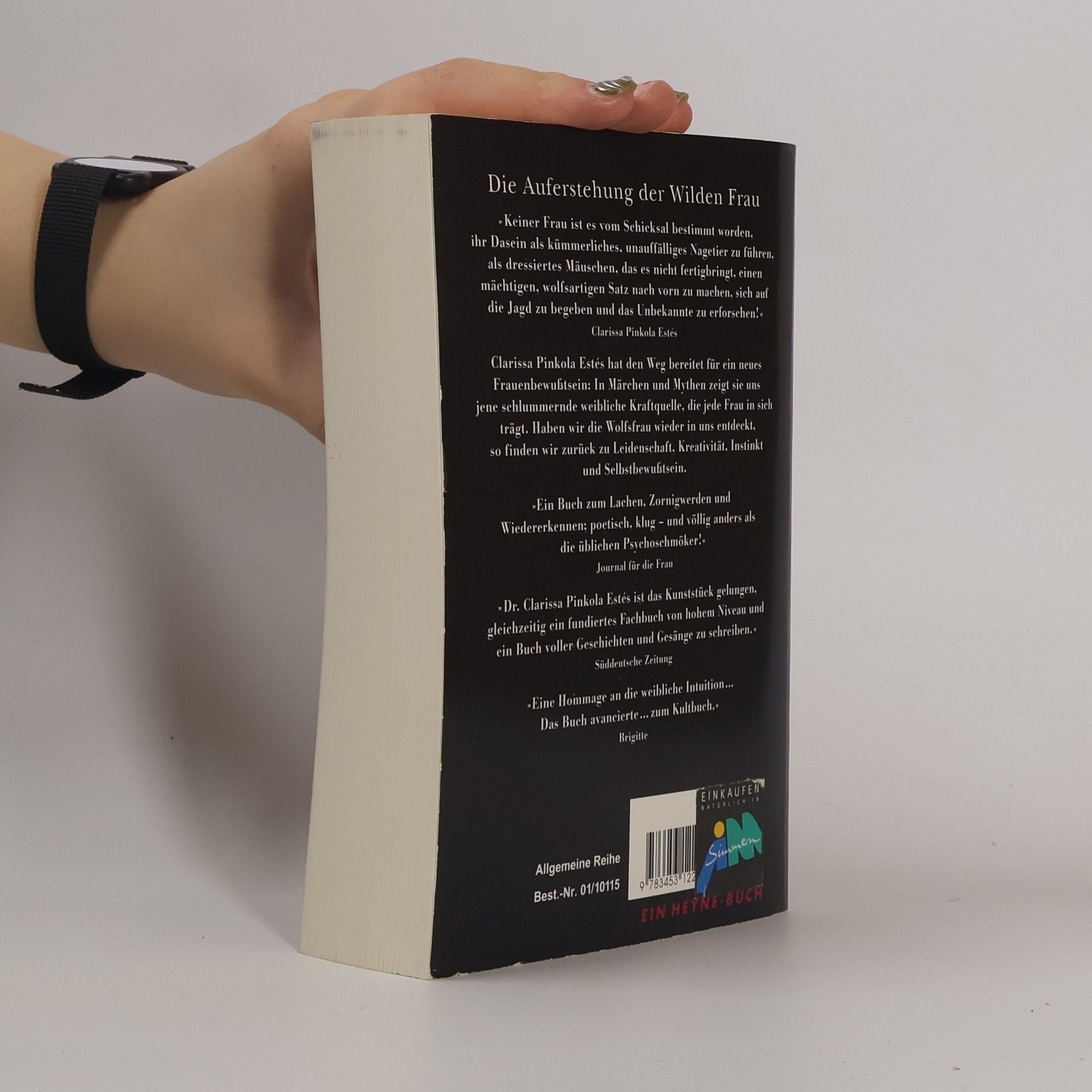 \"Was ist aus meiner Seele geworden? Was in mir ist kaputt, abgestorben oder droht, abzusterben, wenn ich soweitermache? Welche Grundbedürfnisse liegen inzwischen unter Sanddünen begraben? Wie steht es mit meiner Beziehung zum wilden, instinktiven Selbst? Wann bin ich zum letzten Mal frei und laut lachend einem unbekannten Horizont entgegengelaufen? Was sagt die Stimme meiner Seele in diesem Augenblick? Singt sie die herrlichen Schöpfungshymnen oder verstummt sie immer mehr? Wie mache ich das Totgeglaubte wieder lebendig in mir, in meinem Haus und meiner Umwelt? Wo ist die Wolfsfrau in mir? Geht es ihr gut?\" (Wolfsfrau, S.49) In jeder Frau lebt die Wolfsfrau, Sie ist die Hüterin der weiblichen Urinstinkte und des intuitiven Wissens um das, was falsch und was richtig ist. Die Wolfsfrau kennt die Antwort auf alle diese Fragen. Leider ist unsere Gesellschaft so beschaffen, daß sie uns von unseren Gefühlen für das Richtige entfernt oder abschneidet. Damit kommen wir vom Weg eines erfüllenden Daseins ab, den die Wolfsfrau uns zeigen kann und hören die Stimme nicht mehr, mit der sie zu uns spricht. Die Autorin C.P.Estés ist seit zwanzig Jahren als Psychoanalytikerin tätig und lebt in Wyoming oder Colorado. Für sie sind Geschichten Medizin. In Sagen, Mythen und Märchen steckt in verschlüsselter Form ein Urwissen um die innersten Zusammenhänge aller Dinge. Darum sind diese Überlieferungen immer aktuell und können in jede Zeit übersetzt werden. Das zunehmend künstliche Leben in unserer Zivilisation greift die Seele und die ursprüngliche Natur des Menschen empfindlich an. Viele körperliche und psychische Krankheiten zeigen wie eine rote Warnlampe an, daß unsere Seele krankt. Geschichten können ein Weg sein, um wieder Zugang zu unserem im Unbewußten vergrabenen oder verdrängten Selbst zu finden und die Energien frei werden zu lassen, die einen gesunden, kreativen und lebensfrohen Menschen ausmachen. Clarissa Estés stellt in ihrem Buch Märchen und Mythen aus den verschiedensten Regionen der Welt vor und erzählt sie uns mit viel Phantasie und kraftvoller Sprache. Mit der Deutung jeder Erzählung bringt sie tiefe und allgemeingültige Inhalte ans Licht und stellt bestechende Zusammenhänge zwischen der Handlung im Märchen und unserem heutigen Erleben her. In eindrucksvollen Bildern beschreibt Estés den Weg, den jeder gehen muß, um zu einem selbstbestimmten, freien und glücklichen Leben zu finden. So erscheint der mühsame Weg des Reifens durch ihre symbolträchtigen, farbenfrohen und feurigen Schilderungen wie eine Abenteuerreise. Ich hoffe, Sie werden hinausgehen und zulassen, daß Ihnen Geschichten, das heißt, das Leben, passieren, und das Sie mit diesen Geschichten aus Ihrem Leben arbeiten -- aus Ihrem Leben, nicht aus dem Leben eines anderen -, daß Sie sie mit Ihrem Blut und Ihren Tränen und Ihrem Lachen bewässern, bis sie blühen, bis Sie selbst voll erblühen. Das ist die Arbeit, die einzige Arbeit. C.P. Estés spricht in ihrem Buch überwiegend die Frauen an, doch ich glaube, daß es für Männer eine ebenso große Fundgrube darstellt, wie für Frauen. Man könnte auch sagen: Die Wolfsfrau von Clarissa Pinkola Estés is das Buch für Frauen, wie Feuer im Bauch von Sam Keen das Buch für Männer ist. --Daphne Großmann