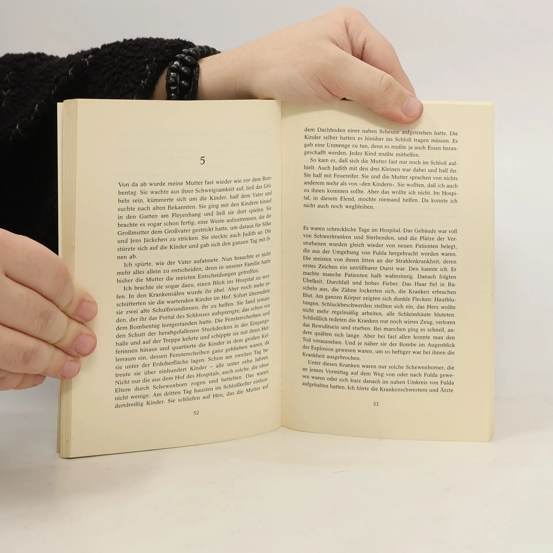 \"Als wir durch Lanthen fuhren, war noch alles wie immer. Aber im Wald, gerade in der Kurve am Kaldener Feld, blitzte es plötzlich grell auf, daß wir die Augen zupressen mußten. Meine Mutter stieß einen Schrei aus, und mein Vater trat so fest auf die Bremse, daß die Reifen quietschten. Sobald der Wagen stand, sahen wir am Himmel, hinter den Wipfeln, ein blendendes Licht, weiß und schrecklich, wie das Licht eines riesigen Schweißbrenners oder eines Blitzes, der nicht vergeht. Ich schaute nur einen Augenblick hinein. Trotzdem war ich danach eine ganze Weile wie blind.\" Über Deutschland explodieren Atombomben. Von nun an beherrschen Krankheit, Todesangst und Kriminalität den Alltag. Eine Zukunft gibt es nicht mehr.