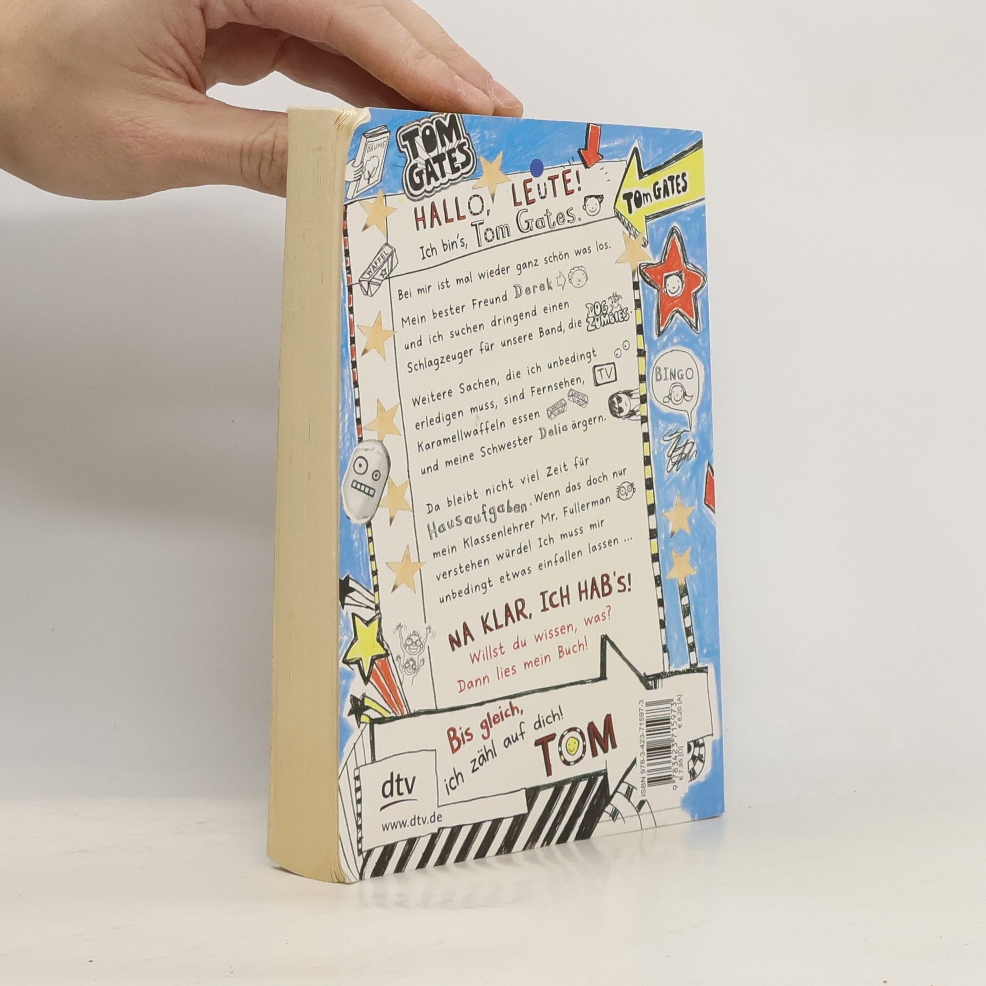 Tom Gates zum Zweiten Tom hat dieses Jahr wirklich Besseres zu tun, als sich um die Schule zu kümmern: Er und sein Freund Derek stehen schließlich mit ihrer super-duper-mega-Band Dogzombies kurz vor dem Durchbruch. Für den großen Auftritt fehlt ihnen allerdings noch der richtig coole Schlagzeuger und es gibt auch sonst jede Menge zu tun. Da bleibt natürlich keine Zeit, um bahnbrechende Aufsätze zu schreiben, doch zum Glück ist Tom nie um eine Ausrede verlegen. Die Mühen zahlen sich am Ende aus: Dogzombies stehen zum ersten Mal auf der Bühne . . .