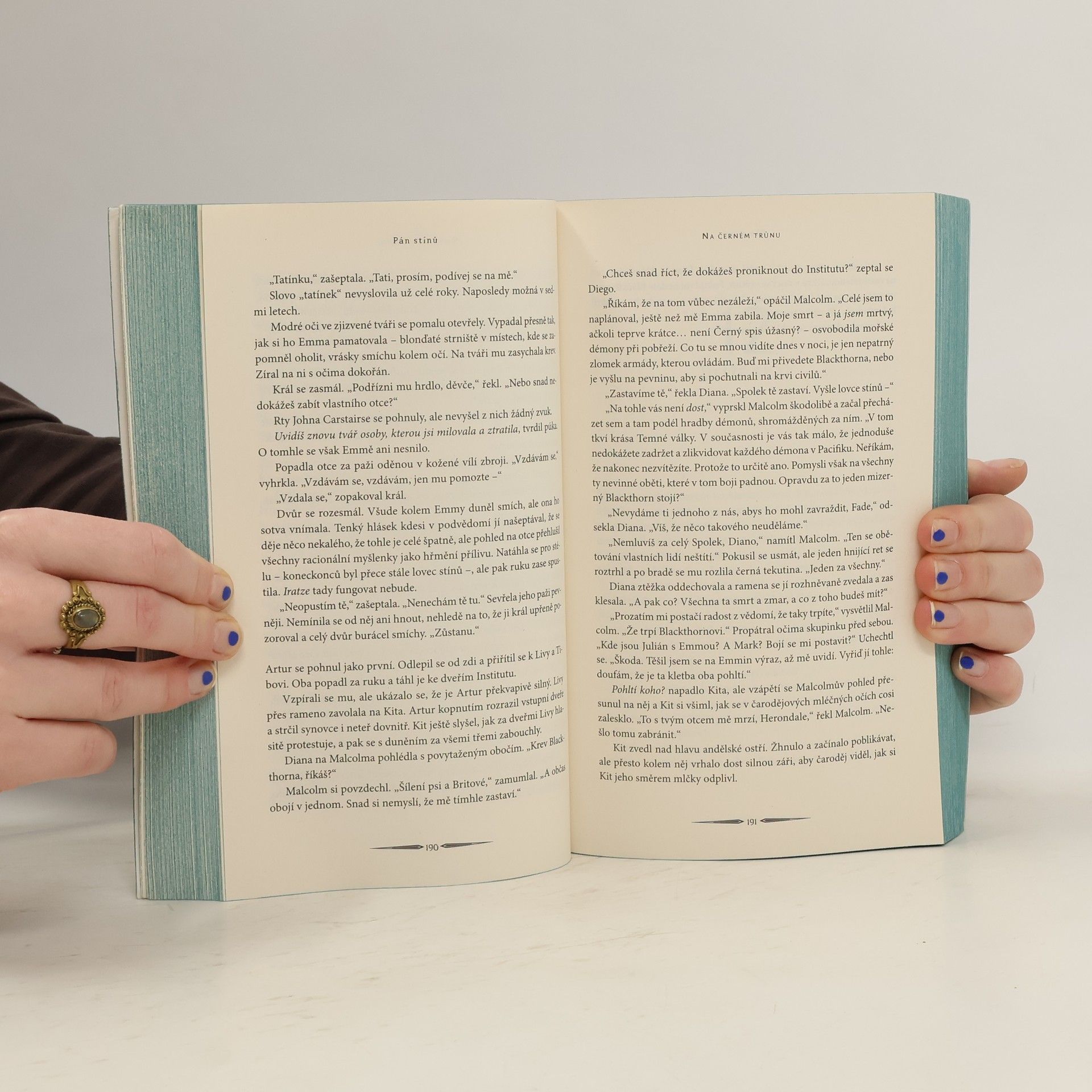 Životy lovců stínů svazuje povinnost. Parabátai bojují bok po boku a stejně tak i umírají, ale nikdy se do sebe nesmějí zamilovat. Emma Carstairsová ví, že láska, kterou cítí ke svému parabátai Juliánu Blackthornovi, není jen zákonem zapovězená, ale mohla by je také oba zničit. Ví, že by se od Juliána měla držet dál, jenže jak by mohla, když rodina Blackthornových čelí nepřátelům hned na několika frontách? Jejich jedinou nadějí je Černý spis mrtvých, mocná kniha, kterou se všichni snaží získat. Není to snadný úkol. Pokračování strhující trilogie Temné lsti, ve jejímž prvním díle Paní půlnoci Cassandra Clare poprvé představila čtenářům nebezpečný a vzrušující svět odvážných lovců stínů.
