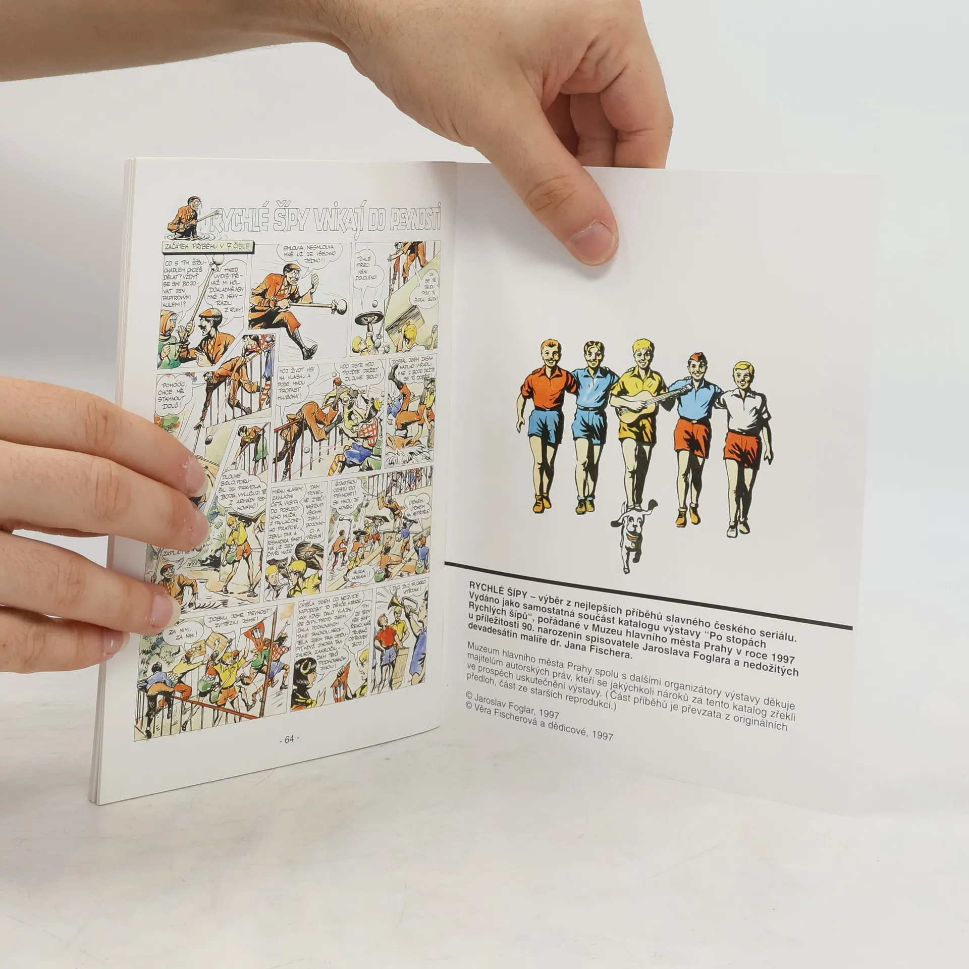 V Muzeu hlavního města Prahy byla 3. dubna 1997 otevřena výstava "Po stopách Rychlých šípů". K výstavě připravili její autoři Jiří Stegbauer a Jaroslav Čvančara výběr z nejlepších příběhů "Rychlé šípy a jejich 65 úžasných dobrodružství", který svou obálkou napodobil stejnojmenný obrázkový sešit Mladého hlasatele z roku 1940. Je rovněž menšího formátu, ale zato je tištěn celobarevně na kvalitním papíře. Všechny příběhy nakreslil Jan Fischer a jsou vybrány jak z Mladého hlasatele, tak ze Vpředu. Jejich výběr neodpovídá pořadí sešitu z roku 1940.