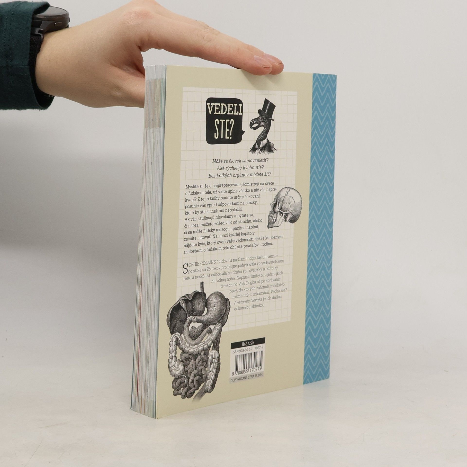 Môže sa človek samovznietiť?Aké rýchle je kýchnutie?Bez koľkých orgánov môžete žiť?Myslíte si, že o najprepracovanejšom stroji na svete - o ľudskom tele, už viete úplne všetko a nič vás neprekvapí? Z tejto knihy budete určite šokovaní, posunie vás vpred odpoveďami na otázky, ktoré by ste si inak ani nepoložili. Ak vás zaujímajú hlavolamy a pýtate sa, či naozaj môžete zošedivieť zo strachu, alebo či sa môže ľudský mozog kapacitne naplniť, začnite listovať. Na konci každej kapitoly nájdete kvíz, ktorý overí vaše vedomosti, takže kurióznymi znalosťami o ľudskom tele ohúrite priateľov i rodinu.