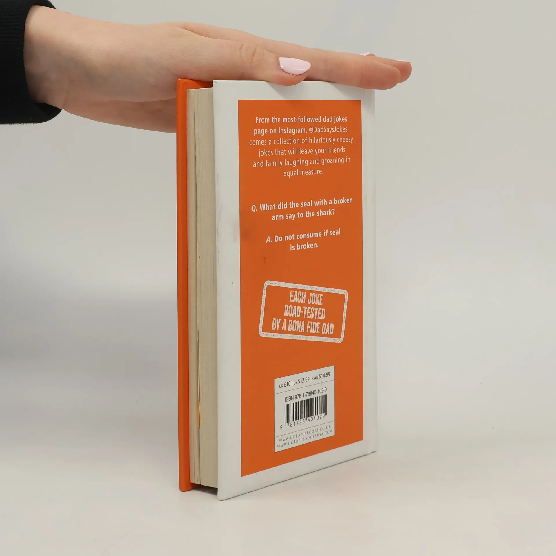 A collection of the very best jokes from the hilarious Instagram account @dadsaysjokes - so bad they're good. From the most-followed dad jokes page on Instagram, @dadsaysjokes, comes a collection of hilariously cheesy jokes that will leave your friends and family laughing and groaning in equal measure. This is the perfect gift for dads who want to expand their repertoire and anyone who fancies reminiscing about a childhood full of these no-nonsense 'bad' puns. Here are a couple of tasters: Q: Why do cows have hooves instead of feet? A: Because they lactose. Q: Are you today's date? A: Cuz you're 10/10.
