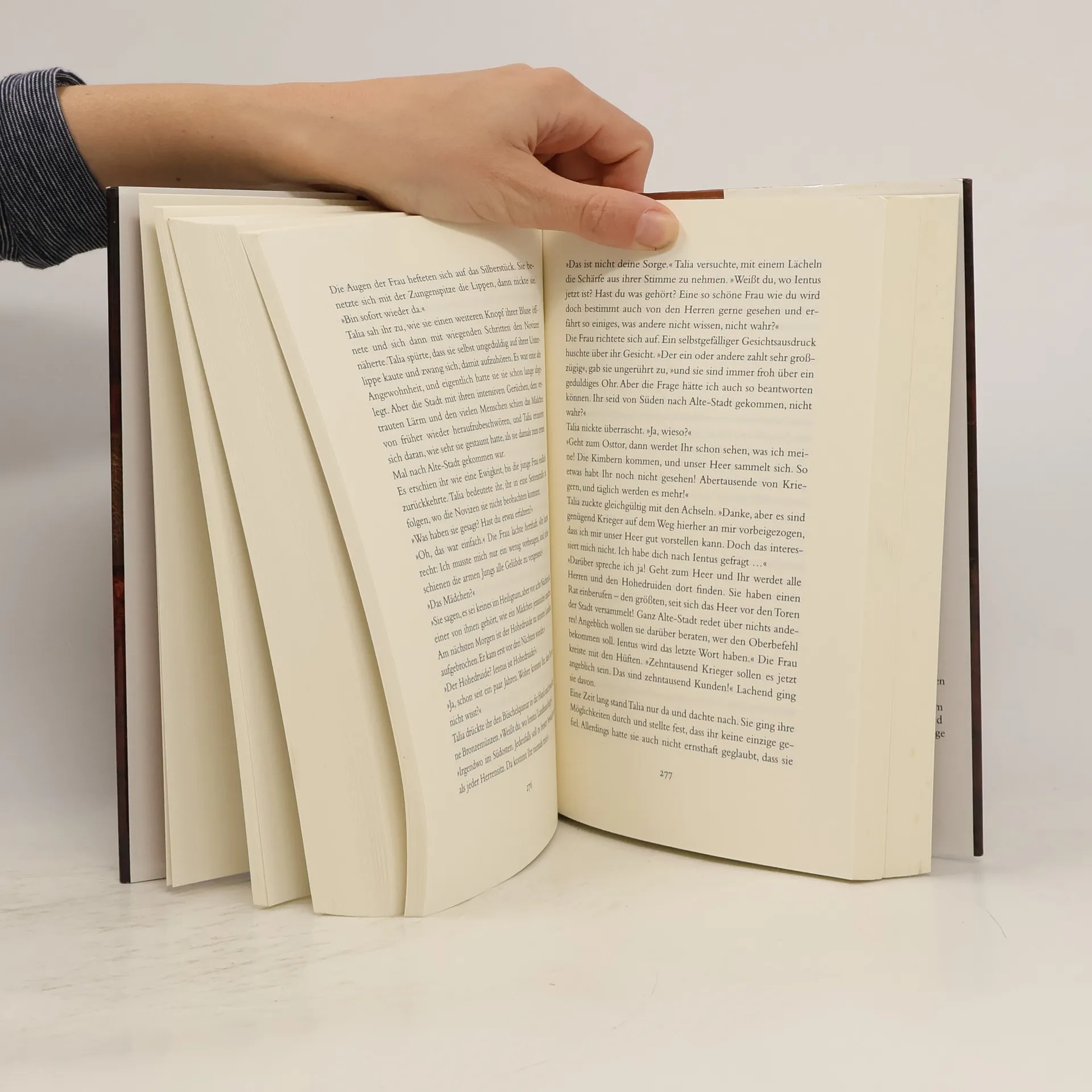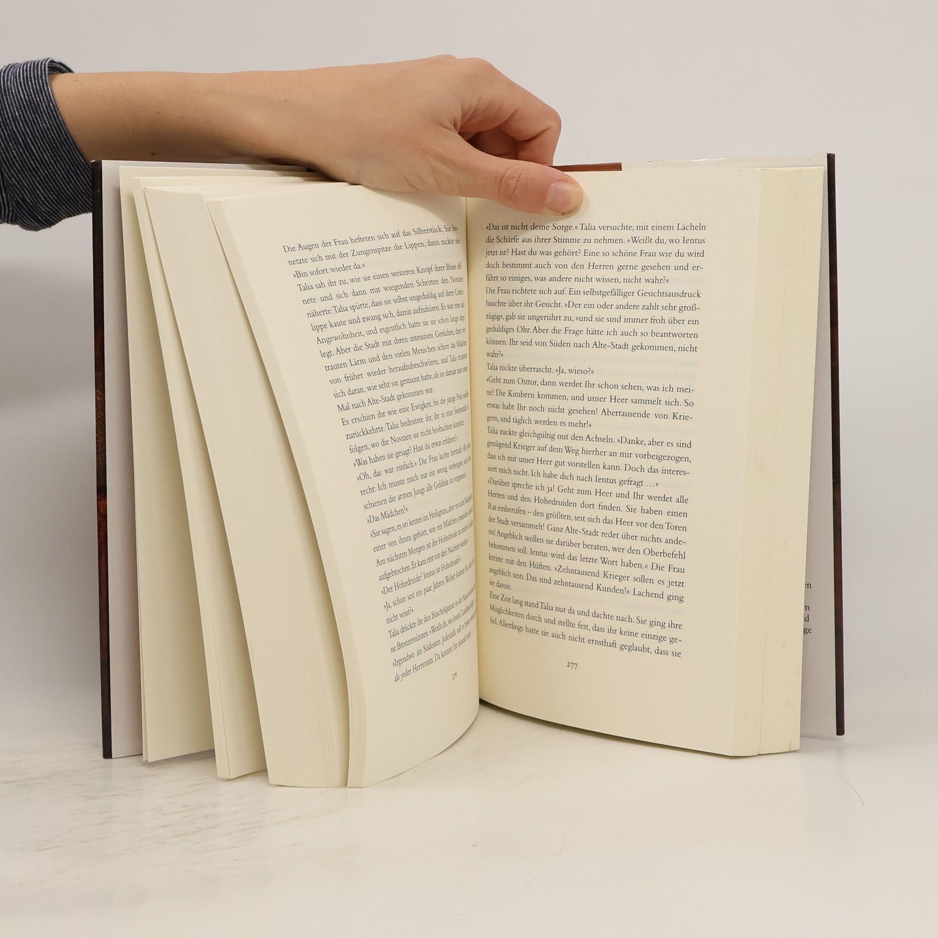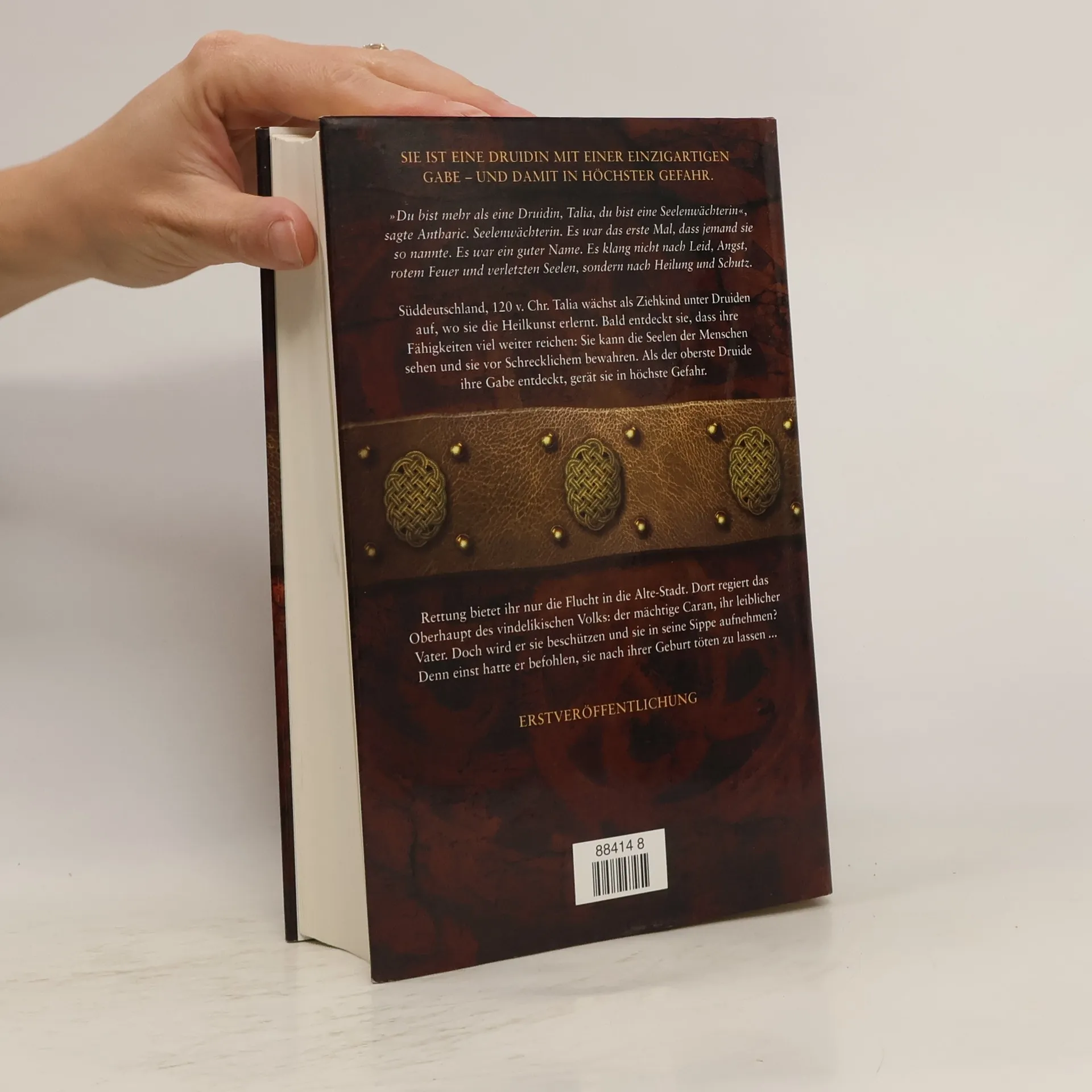 Talia kann Seelen sehen – eine besondere Gabe, die andere Druiden nur zu gerne nutzen würden. Im Haus des Stammesfürsten Caran sucht die junge Frau Zuflucht. Unerkannt – denn sie ist die Tochter, die er einst zu töten befahl ... Für ihren Vater empfindet Talia tiefen Hass – und trotzdem nimmt sie eine Anstellung bei ihm an. Schnell findet sie sich in seinem geschäftigen Haushalt in Alte-Stadt zurecht und wird von allen geschätzt, auch von Caran. Doch obwohl Talia es bald genießt, zu seiner wohlhabenden Sippe zu gehören, ist der germanische Söldner Atharic der Einzige, für den sie mehr empfindet. Lange weiß nur er um ihre besonderen Fähigkeiten. Bis die junge Druidin begreift, dass ihr Vater in Lebensgefahr schwebt. Talia muss sich entscheiden: Will sie ihre Rache – oder nutzt sie ihre Gabe, um ihn zu retten?