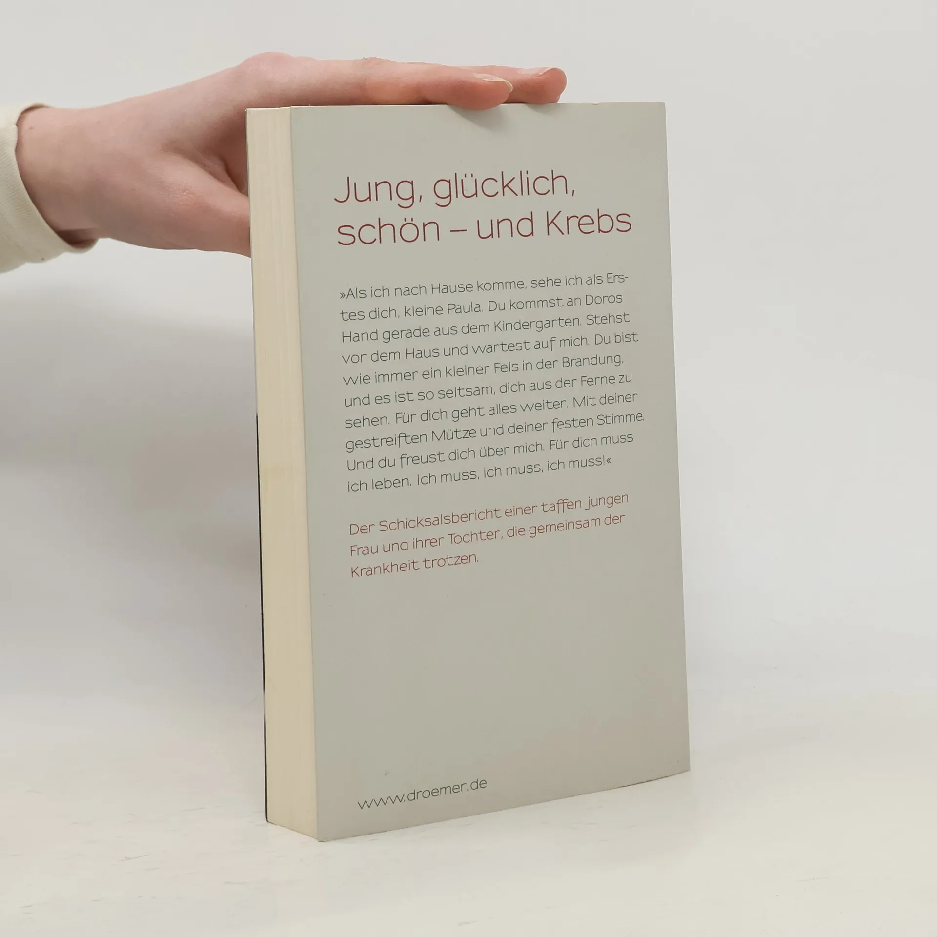 Jung, glücklich, schön – und Krebs »Als ich nach Hause komme, sehe ich als Erstes dich, kleine Paula. Du kommst an Doros Hand gerade aus dem Kindergarten. Stehst vor dem Haus und wartest auf mich. Du bist wie immer ein kleiner Fels in der Brandung, und es ist so seltsam, dich aus der Ferne zu sehen. Für dich geht alles weiter. Mit deiner gestreiften Mütze und deiner festen Stimme. Und du freust dich über mich. Für dich muss ich leben. Ich muss, ich muss, ich muss!« Der Schicksalsbericht einer taffen jungen Frau und ihrer Tochter, die gemeinsam der Krankheit trotzen.