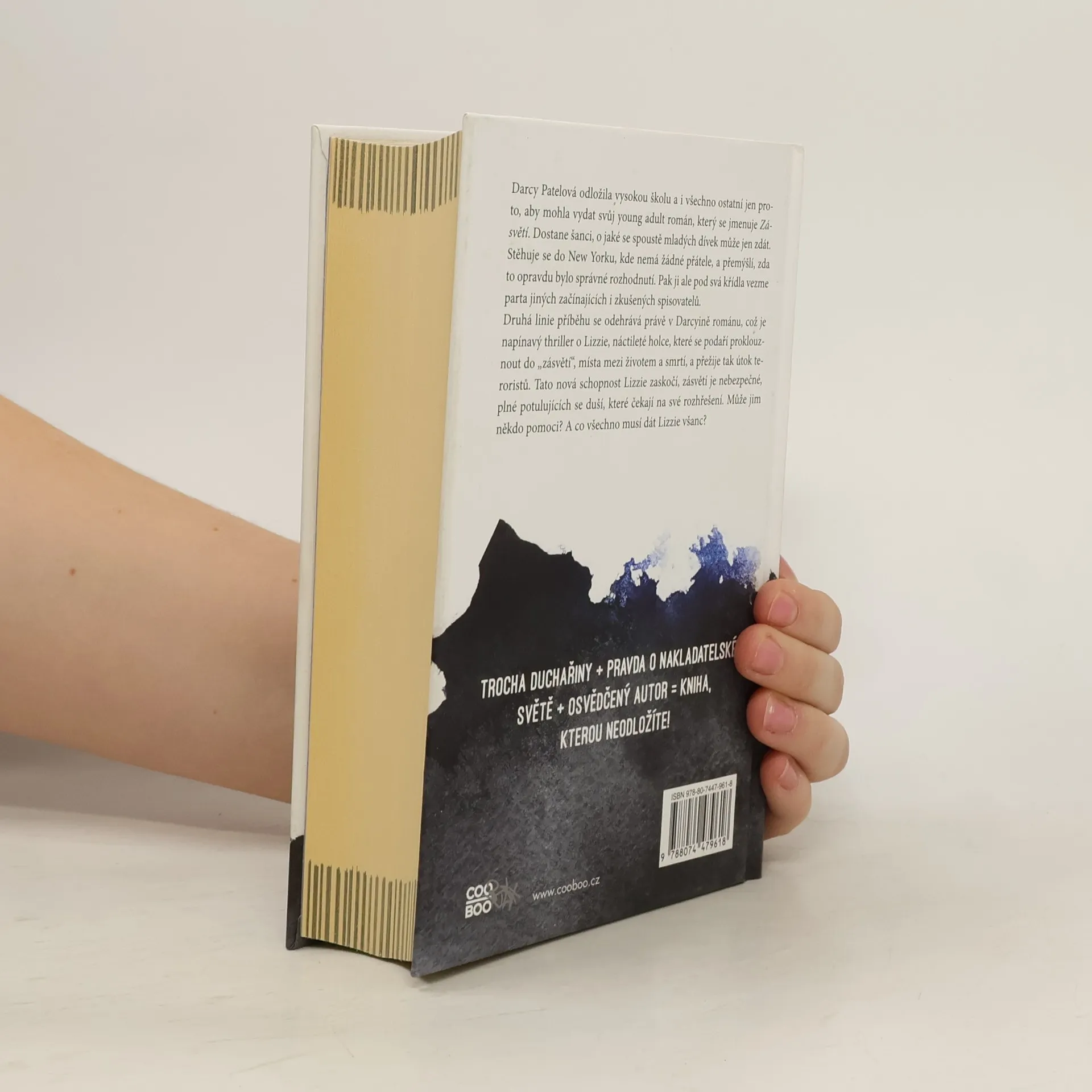 Darcy Patelová odložila vysokou školu a i všechno ostatní jen proto, aby mohla vydat svůj young adult román, který se jmenuje Zásvětí. Dostane šanci, o jaké se spoustě mladých dívek může jen zdát. Stěhuje se do New Yorku, kde nemá žádné přátele a přemýšlí, zda to opravdu bylo správné rozhodnutí. Pak ji ale pod svá křídla vezme parta jiných začínajících i zkušených spisovatelů. Druhá linie příběhu se odehrává právě v Darcyině románu, což je napínavý thriller o Lizzie, náctileté holce, které se podaří proklouznout do „Zásvětí“, místa mezi životem a smrtí, a přežije tak útok teroristů. Tato nová schopnost Lizzie zaskočí, Zásvětí je nebezpečné, plné potulujících se duší, které čekají na své rozhřešení. Může jim někdo pomoci? A co všechno musí dát Lizzie všanc?