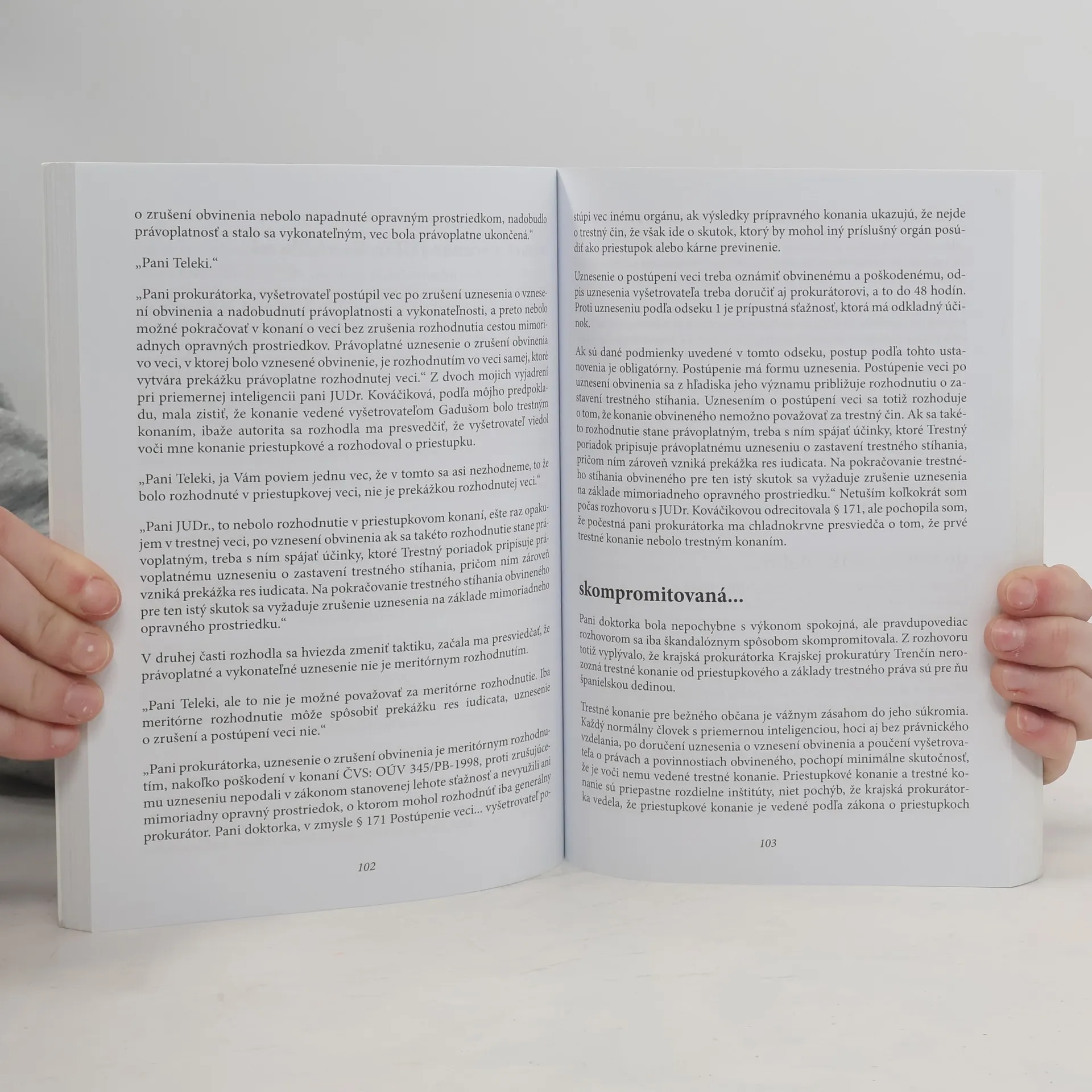 Príbeh, ktorý sa písal 16 rokov. Prenasledovanie novinárky slovenskou justíciou. Policajné násilie a svojvôľa. Zneužívanie psychiatrie. Sudcovia a prokurátori, ktorí zneužili svoje právomoci. Pravdivé udalosti, skutočné mená. Ľudia v talároch a uniformách, ktorí zlyhali, ale dodnes majú právo vykonávať štátnu moc. Skutočné svedectvá a vyjadrenia. Strach o život a útek pred justičnou mafiou do zahraničia.