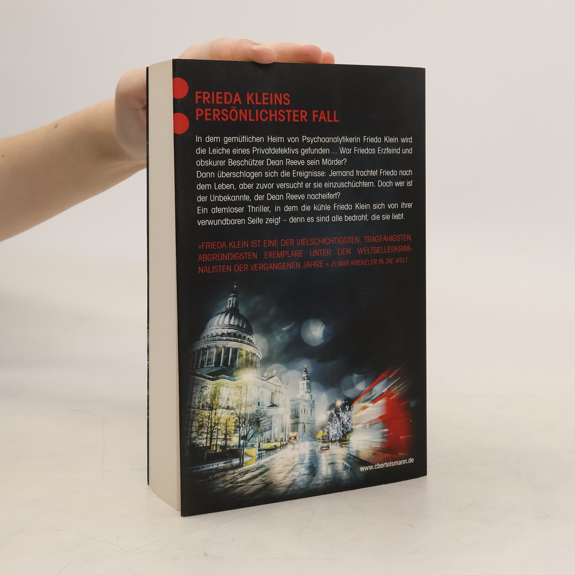 In dem gemütlichen Heim von Psychoanalytikerin Frieda Klein wird die Leiche eines Privatdetektivs gefunden ... War Friedas Erzfeind und obskurer Beschützer Dean Reeve der Mörder? Dann überschlagen sich die Ereignisse: Jemand trachtet Frieda nach dem Leben, doch zuvor versucht er sie einzuschüchtern. Ihre Nichte Chloe, Freund Jack, der schwer krebskranke Reuben und Josefs kleiner Sohn – sie alle werden Opfer von Anschlägen. Die Polizei tappt im Dunkeln, aber Frieda ist bald klar, dass die Verbrechen nicht Reeves Handschrift tragen. Doch wer ist der Unbekannte, der ihm nacheifert? Ein atemloser Thriller, in dem Frieda sich von ihrer verwundbaren Seite zeigt – denn es sind alle bedroht, die sie liebt ...