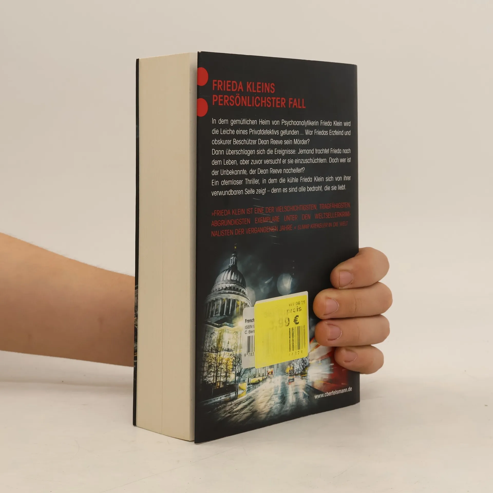 In dem gemütlichen Heim von Psychoanalytikerin Frieda Klein wird die Leiche eines Privatdetektivs gefunden ... War Friedas Erzfeind und obskurer Beschützer Dean Reeve der Mörder? Dann überschlagen sich die Ereignisse: Jemand trachtet Frieda nach dem Leben, doch zuvor versucht er sie einzuschüchtern. Ihre Nichte Chloe, Freund Jack, der schwer krebskranke Reuben und Josefs kleiner Sohn – sie alle werden Opfer von Anschlägen. Die Polizei tappt im Dunkeln, aber Frieda ist bald klar, dass die Verbrechen nicht Reeves Handschrift tragen. Doch wer ist der Unbekannte, der ihm nacheifert? Ein atemloser Thriller, in dem Frieda sich von ihrer verwundbaren Seite zeigt – denn es sind alle bedroht, die sie liebt ...