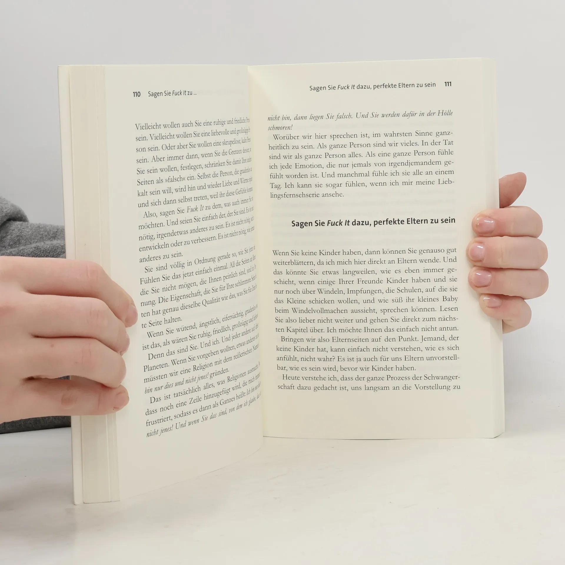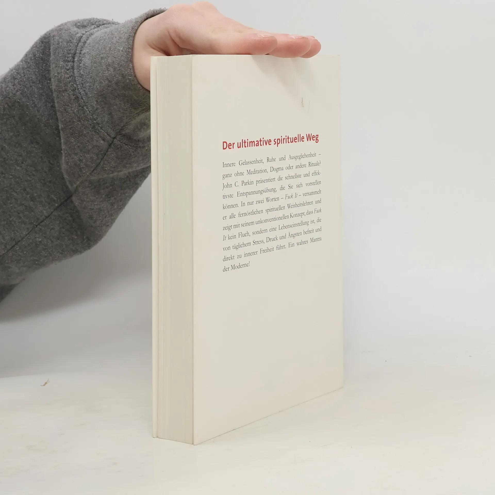 Der ultimative spirituelle Weg Ohne Guru oder jahrelanges Meditieren: John C. Parkin präsentiert die schnellste Entspannungsübung, die man sich vorstellen kann. Es braucht nur zwei Worte, die, laut und voller Überzeugung gesprochen, zu Gelassenheit und innerer Freiheit führen: „Fuck it!“ ist der perfekte Ausdruck der westlichen Welt, der alle fernöstlichen Weisheitslehren in sich vereint. Loslassen, Abstand gewinnen, akzeptieren, was ist, und entspannen. Kurz: „Fuck it!“ ist kein Fluch, sondern eine Lebenseinstellung. Die archaische und anarchische Kraft von „Fuck it!“ hilft dabei, Abstand von den Dingen zu gewinnen, die uns belasten oder die wir uns nicht zutrauen. In all seiner Einfachheit, Klarheit und Effizienz ist es ein spiritueller Weg, der ohne Dogma, meditative Gesänge oder Räucherstäbchen auskommt – und nichtsdestotrotz von unserem täglichen Stress und von Ängsten und Druck befreit. John C. Parkins unkonventionelles Konzept zeigt, wie wir eine neue innere Haltung voller Ruhe und Ausgeglichenheit gewinnen, wenn wir aufhören, alles kontrollieren zu wollen, und lernen, loszulassen. Eine inspirierende Mischung aus Buddhismus und Rebellion, die direkt zu wahrer Freiheit führt. Fernöstliche Weisheit für unseren Alltag, inspirierend und humorvoll.