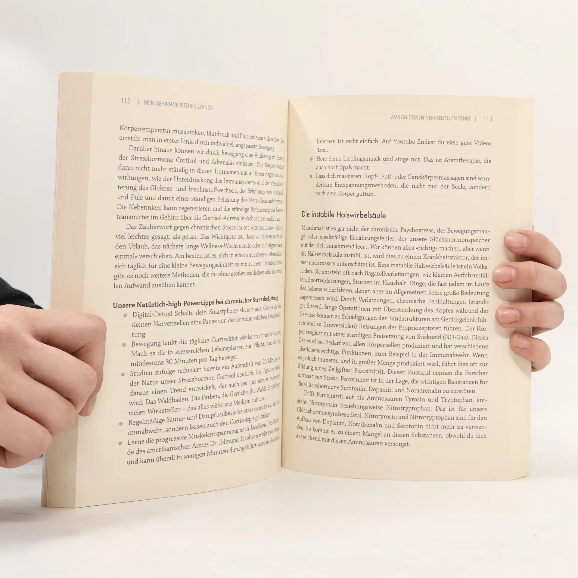 Burnout, Depressionen, Antriebslosigkeit – viele der weit verbreiteten psychischen Probleme sind auf einen Mangel an den Neurotransmittern Serotonin, Dopamin, Noradrenalin und GABA zurückzuführen. Verantwortlich für die unzureichende Bildung dieser Glückshormone sind Ernährungsfehler, Bewegungsmangel und unnatürliche Lichtverhältnisse. Mit dem wissenschaftlich fundierten Selbsttest der Heilpraktiker Kyra und Sascha Kauffmann kann ein Botenstoffmangel bestimmt werden. Bestimmte Lebensstilveränderungen und Behandlungsmethoden helfen, die körpereigenen Hormone zu aktivieren, um dauerhaft Energie und Lebensfreude zurückzugewinnen.