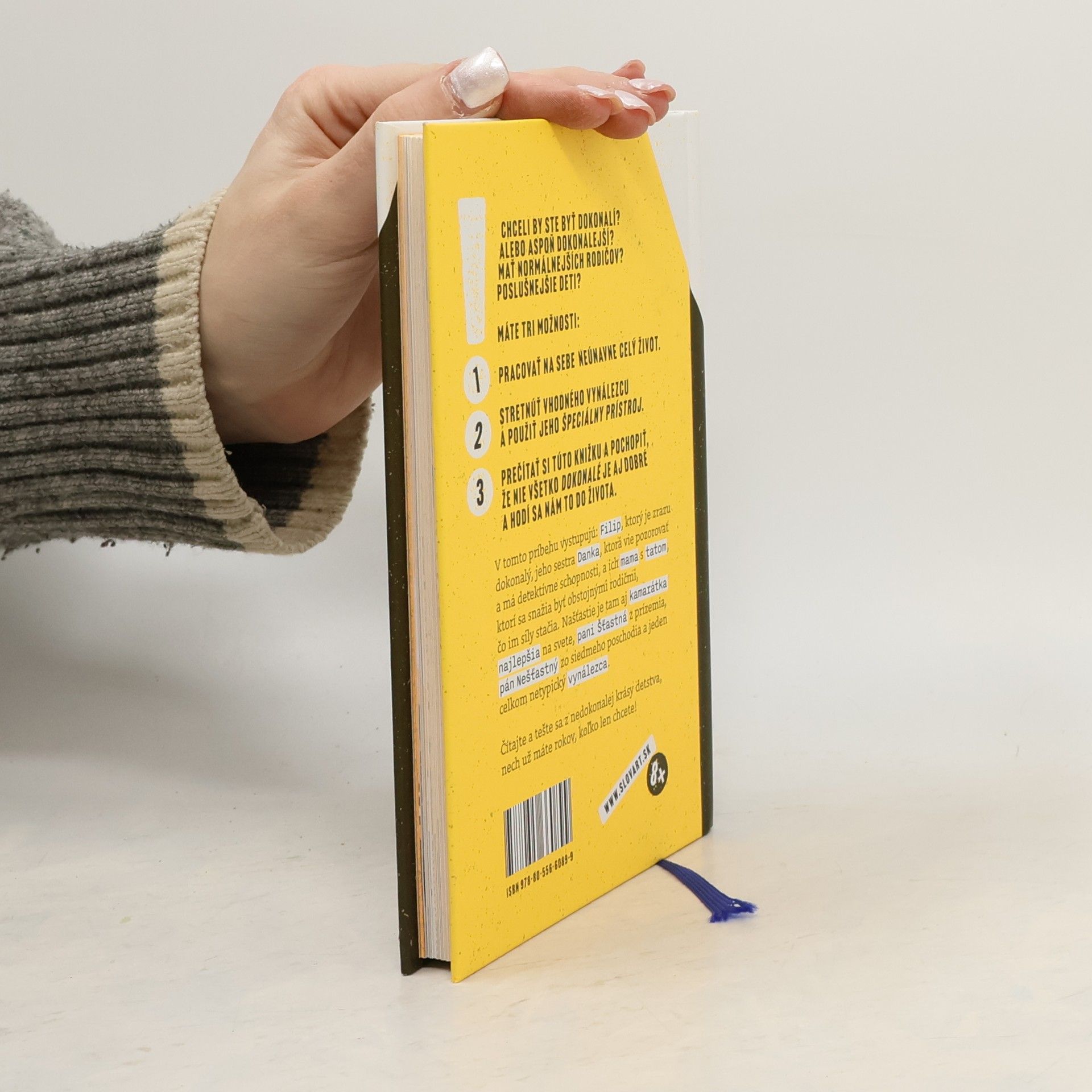 Príbeh pre deti aj pre dospelých o tom, že dokonalé je nepriateľom dobrého, ale kým to nevyskúšame, nevieme tomu uveriť.Chceli by ste byť dokonalí? Alebo aspoň dokonalejší? Mať normálnejších rodičov? Poslušnejšie deti? Máte tri možnosti: Pracovať na sebe neúnavne celý život. Stretnúť vhodného vynálezcu a použiť jeho špeciálny prístroj. Prečítať si túto knižku a pochopiť, že nie všetko dokonalé je aj dobré a hodí sa nám to do života.V tomto príbehu vystupujú: Filip, ktorý je zrazu dokonalý, jeho sestra Danka, ktorá vie pozorovať a má detektívne schopnosti, a ich mama s tatom, ktorí sa snažia byť obstojnými rodičmi, čo im sily stačia. Našťastie je tam aj kamarátka najlepšia na svete, pani Šťastná z prízemia, pán Nešťastný zo siedmeho poschodia a jeden celkom netypický vynálezca. Čítajte a tešte sa z nedokonalej krásy detstva, nech už máte rokov, koľko len chcete! Publikáciu z verejných zdrojov podporil Fond na podporu umenia.