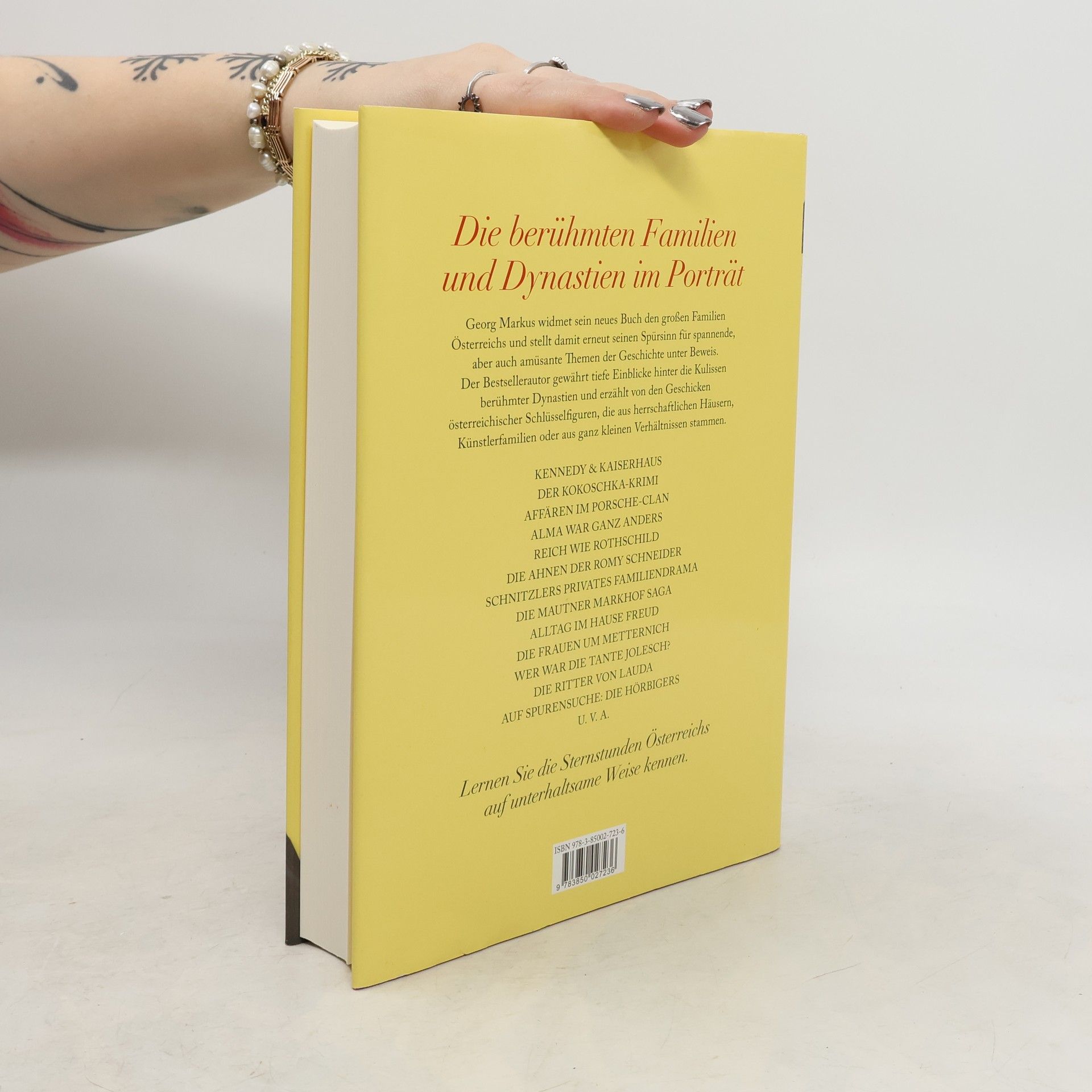 Georg Markus widmet sein neues Buch den großen österreichischen Familien und stellt damit erneut seinen Spürsinn für spannende, aber auch amüsante Themen der Geschichte unter Beweis. Der Leser begegnet dem Porsche-Clan und den Rothschilds, den Laudas, Hörbigers, Mautner Markhofs und Metternichs. Mit viel Feingefühl gewährt der Bestsellerautor tiefe Einblicke hinter die Kulissen und zeigt auf diese Weise das sehr private Leben legendärer Familien. Georg Markus erzählt von Glück und Tragödie österreichischer Schlüsselfiguren und ihrer Ahnen und Angehörigen, darunter auch die Familien Freud, Mahler, Thimig-Reinhardt, Kokoschka, Habsburg, Strauß, Bösendorfer, Schnitzler, Nestroy, Albach-Retty – den Vorfahren der Romy Schneider... Mit einer Fülle an bisher nie veröffentlichten Geschichten erfährt man hier vom Aufstieg und Fall, vom Streben und Scheitern heimischer Dynastien, von den Schicksalen berühmter Leute, die aus herrschaftlichen Häusern, Künstlerfamilien oder auch aus ganz kleinen Verhältnissen stammen. Liebe, Streit, Hass, Intrigen, Heiteres und Tragisches, manchmal sogar Mord und Totschlag – all das gab es innerhalb der hier beschriebenen Familien. Genügend Themen jedenfalls für ein überaus spannendes Buch.