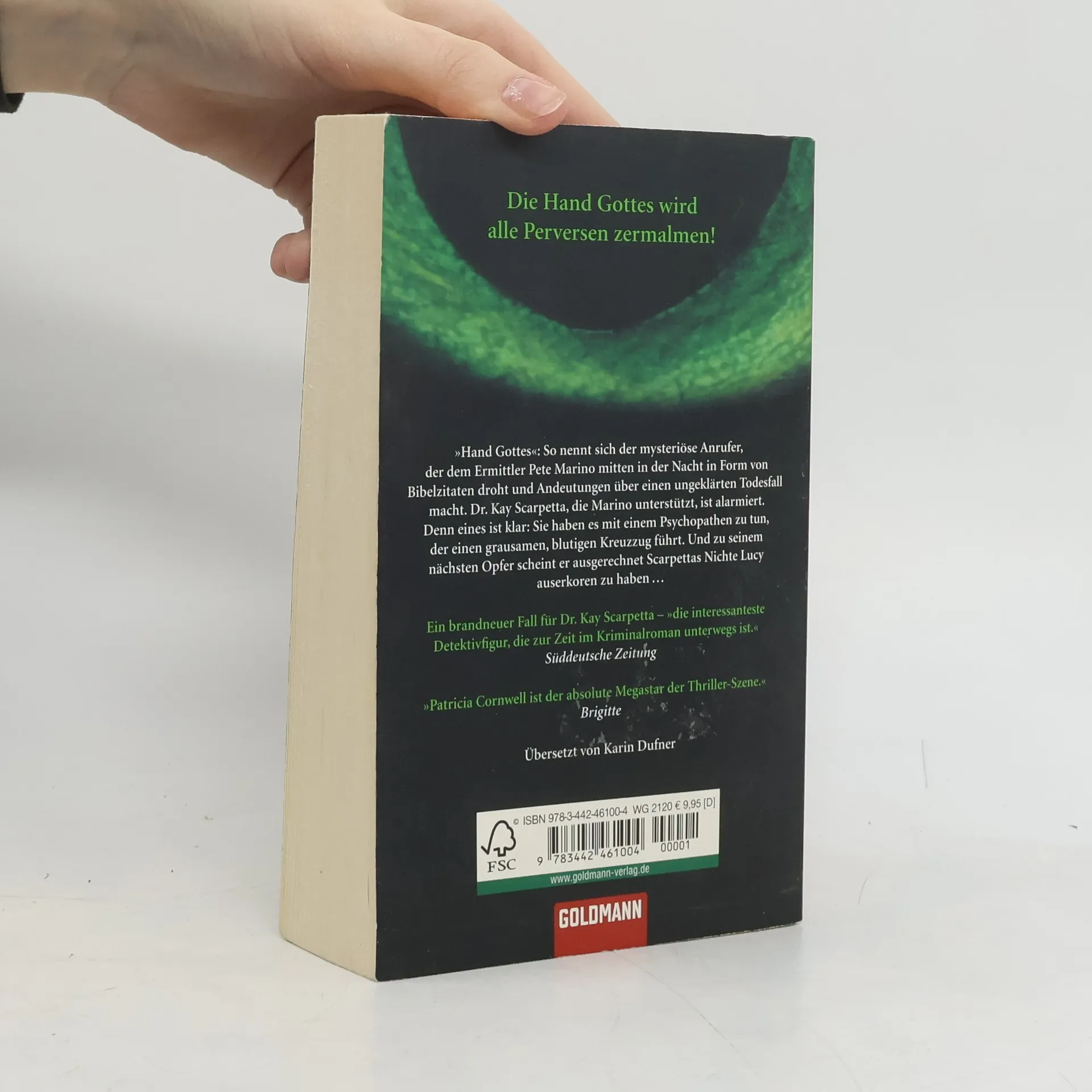„Hand Gottes“: So nennt sich der mysteriöse Anrufer, der dem Ermittler Pete Marino mitten in der Nacht in Form von Bibelzitaten droht und Andeutungen über einen ungeklärten Todesfall macht. Dr. Kay Scarpetta, die Marino unterstützt, ist alarmiert. Denn eines ist klar: Sie haben es mit einem Psychopathen zu tun, der einen grausamen, blutigen Kreuzzug führt …