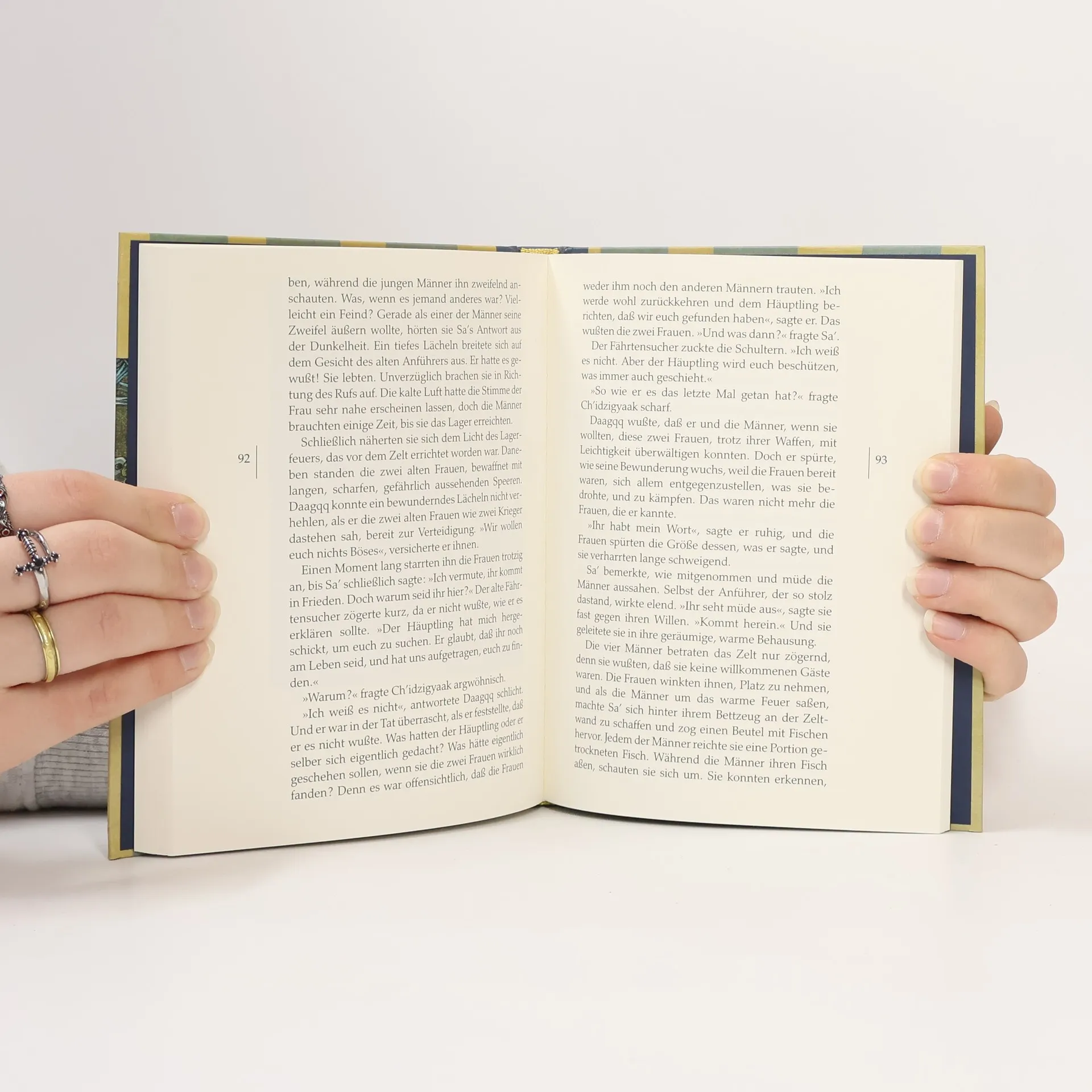 Die Geschichte von zwei alten Indianerfrauen eines Nomadenvolkes hoch oben im Norden Alaskas. In einem strengen Winter wird der Stamm von einer Hungersnot heimgesucht. Die Gruppe ist gezwungen, ihr Lager zu verlassen und auf Nahrungssuche zu gehen. Ihr Häuptling beschließt, wie es das Stammesgesetz vorsieht, die zwei alten Frauen, da sie unnütze Esser sind, zurückzulassen. Keiner wagt, gegen diesen Beschluß aufzubegehren. Doch allein in der Wildnis geschieht das Erstaunliche: Die beiden alten Frauen geben sich nicht auf. Ihr Überlebenswille siegt über ihren Zorn, und nach und nach besinnen sie sich auf ihre Fähigkeiten... Eindringlich erzählt Velma Wallis in diesem Buch eine Legende nach, die sie von ihrer eigenen Mutter hörte und die in ihrem Stamm seit Generationen mündlich weitergegeben wird.