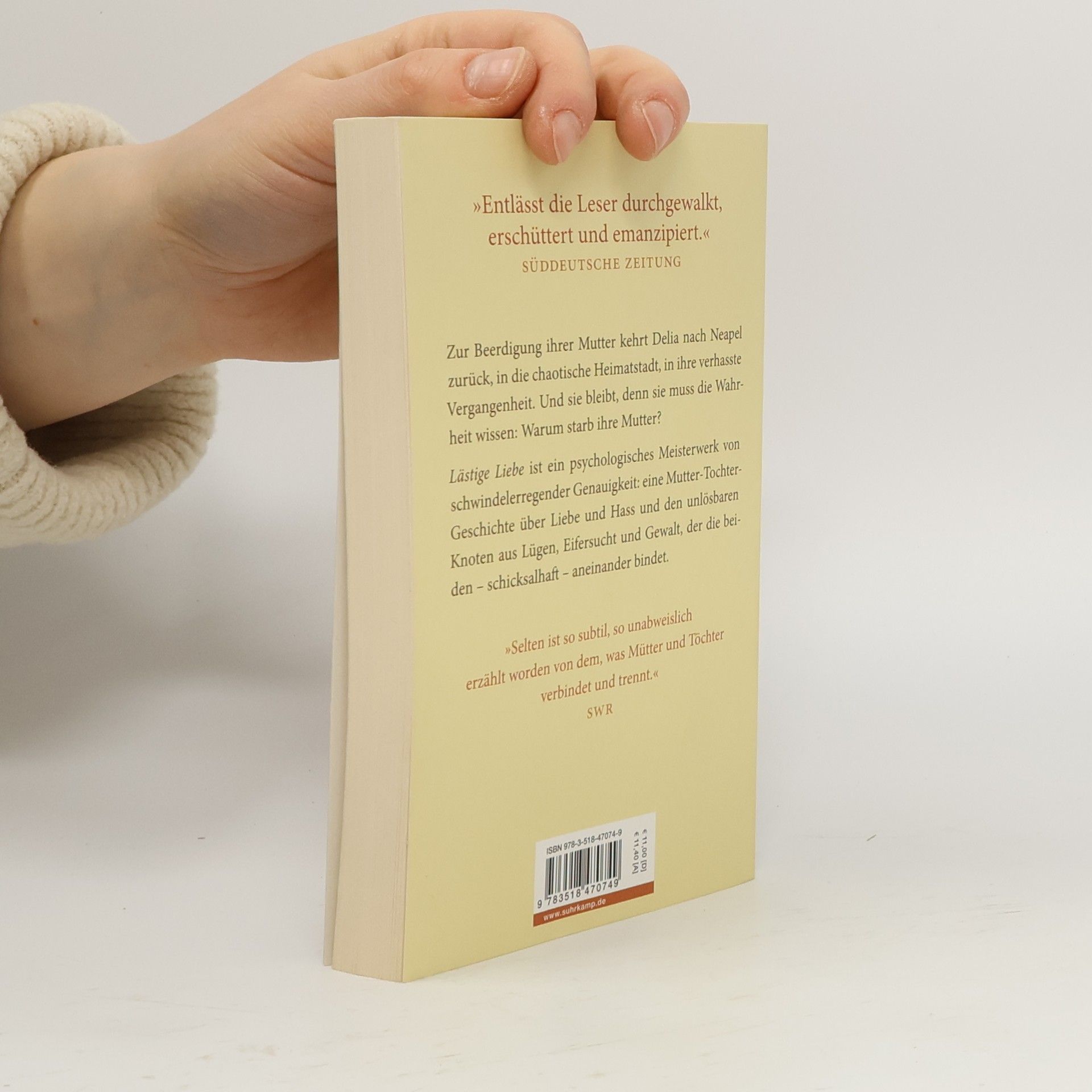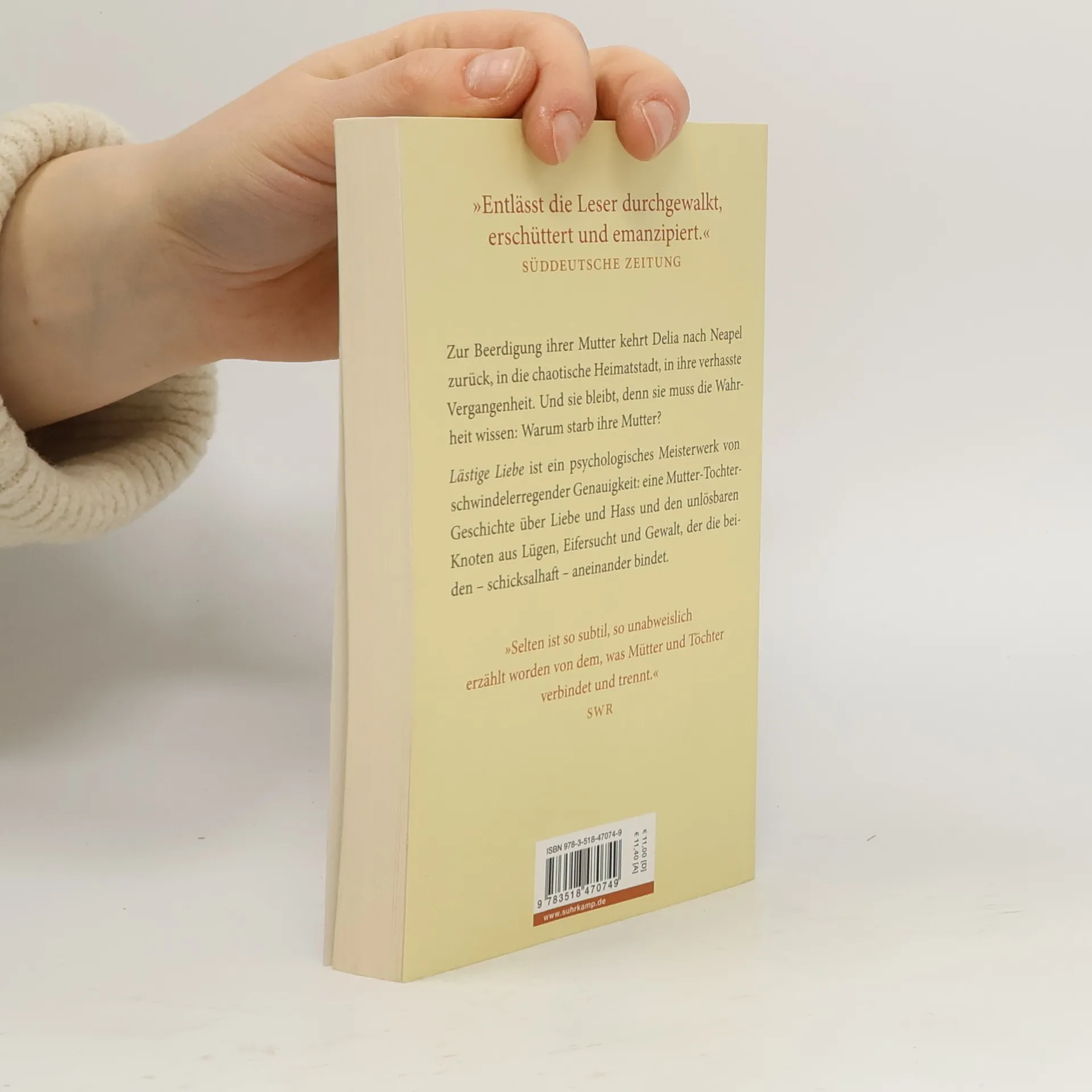 Lästige Liebe ist ein psychologisches Meisterwerk von schwindelerregender Genauigkeit: eine Mutter-Tochter-Geschichte über Liebe und Hass und den unlösbaren Knoten aus Lügen, Eifersucht und Gewalt, der die beiden – schicksalhaft – aneinanderbindet. Dreimal ruft sie an, sie klingt verstört, und eigentlich sollte sie im Zug nach Rom sitzen, unterwegs zu Delia, ihrer Tochter. Wenig später wird ihre Leiche an Land gespült. Zur Beerdigung kehrt Delia nach Neapel zurück, in die chaotische Heimatstadt, in ihre verhasste Vergangenheit. Und sie bleibt, denn sie muss die Wahrheit wissen: Warum starb ihre Mutter? Und welche Rolle spielt Caserta, ein ehemaliger Freund ihres Vaters, der plötzlich wieder auftaucht? Er jedenfalls scheint der Letzte zu sein, der die Mutter lebend gesehen hat. Zunehmend verzweifelt, läuft Delia durch die Gassen der Stadt und entwirrt Erinnerungen, die sie lange unterdrückt hatte. Noch ahnt sie nicht, wie schutzlos sie sein wird, gegen das Geheimnis ihrer eigenen Kindheit …