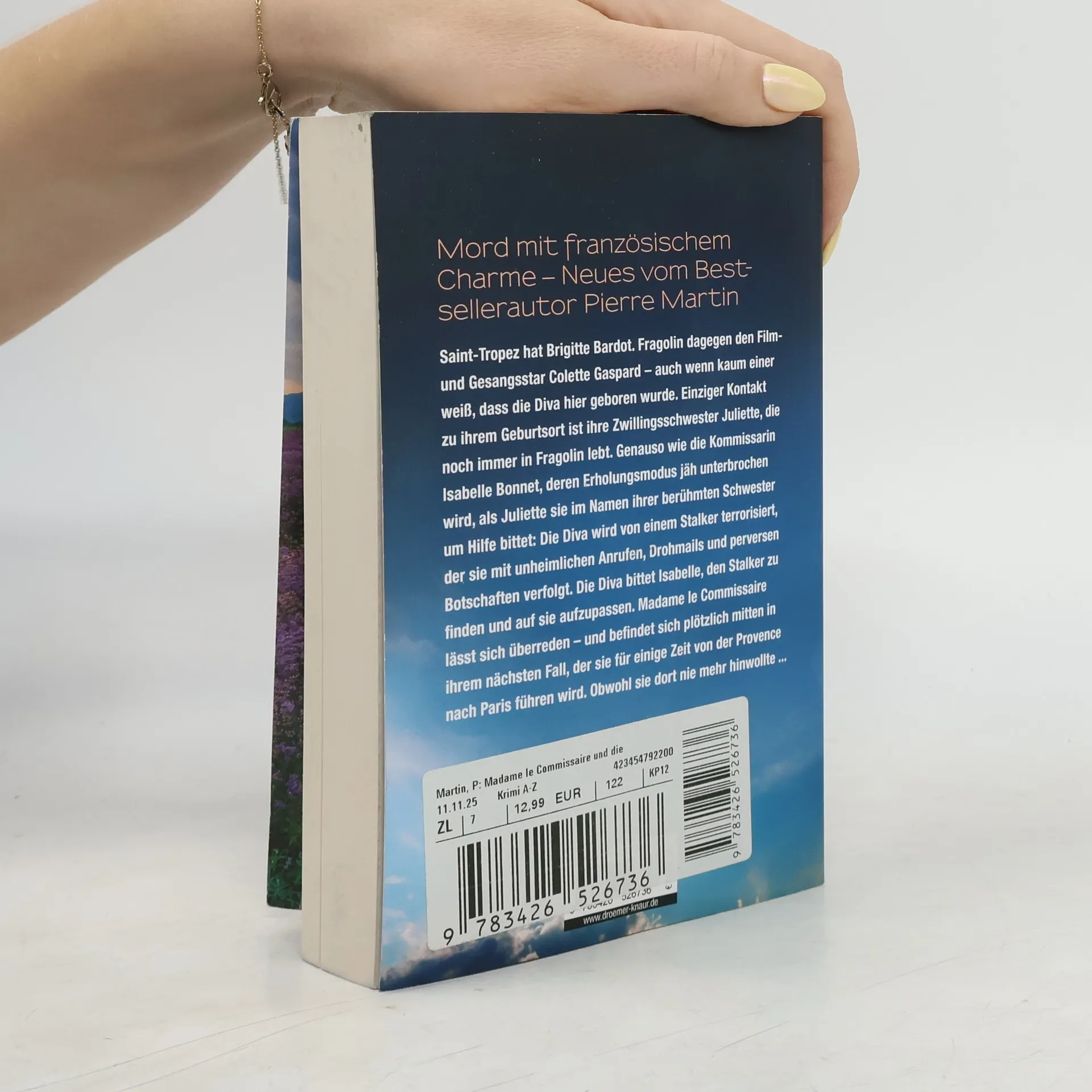 Im malerischen Provence-Dorf Fragolin, wo die Film- und Gesangsikone Colette Gaspard geboren wurde, lebt ihre Zwillingsschwester Juliette. Kommissarin Isabelle Bonnet genießt gerade ihre Auszeit, als Juliette sie um Hilfe bittet: Colette wird von einem Stalker belästigt, der sie mit unheimlichen Anrufen und Drohmails verfolgt. Da Colette in Ramatuelle wohnt, ist der Fall nicht weit entfernt. Juliette erinnert Isabelle an ihre frühere Tätigkeit als Personenschützerin und überzeugt sie, den Stalker zu finden und auf Colette aufzupassen. Isabelle wird in einen neuen Fall hineingezogen, der sie unerwartet von der Provence nach Paris führt, ein Ort, den sie eigentlich meiden wollte. Mit Urlaubsflair, charmanten Charakteren und einer spannenden Handlung fesselt Pierre Martin seine Leser erneut in der Reihe um die sympathische Madame le Commissaire Isabelle Bonnet. In dieser achten Episode wird die Mischung aus Krimi und Wohlfühlatmosphäre perfekt kombiniert, während Isabelle sich den Herausforderungen stellt, die das Leben und die Liebe in der Provence mit sich bringen.