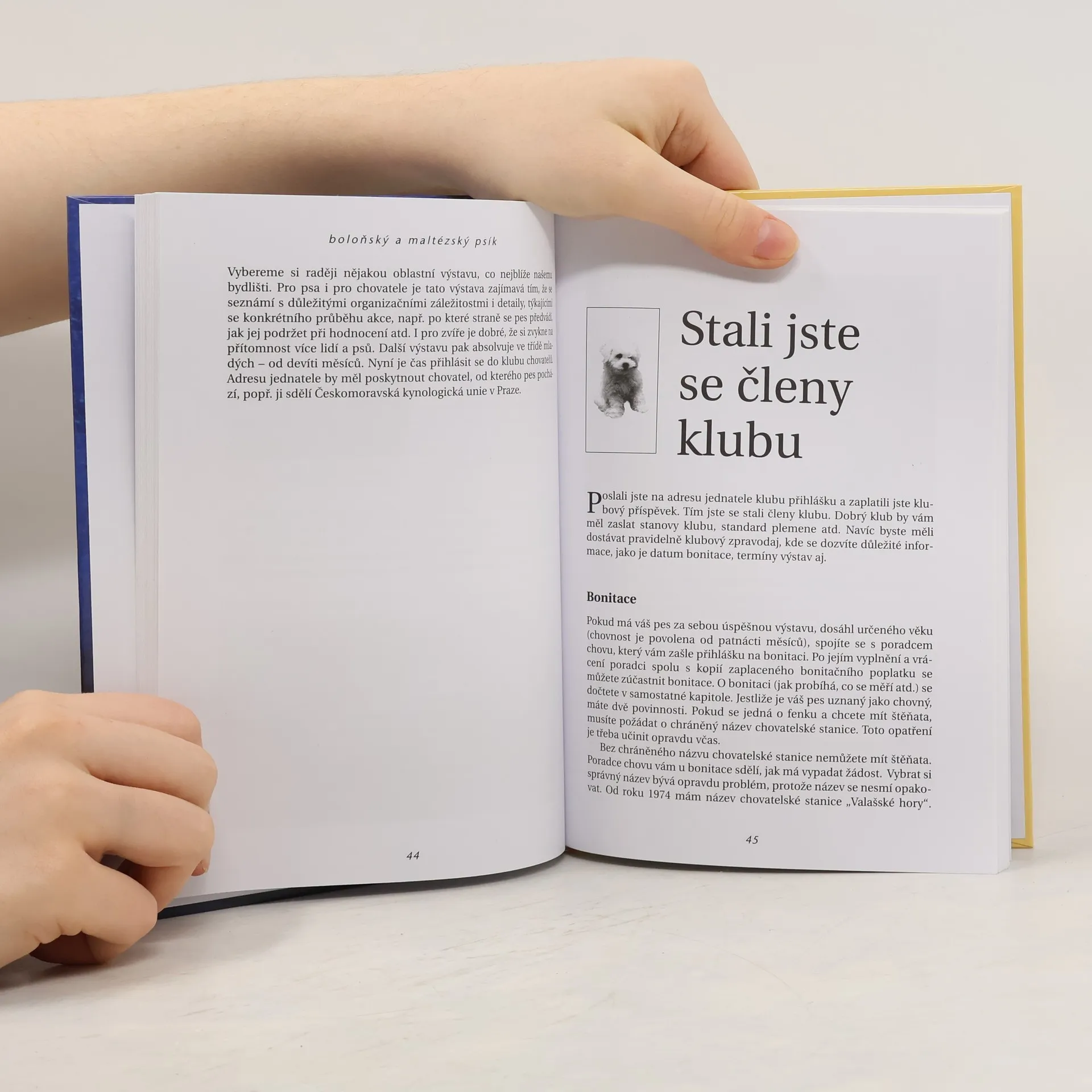 Plemeno boloňský a maltézský psík, původem z Itálie, začíná být i u nás stále ve větší oblibě. Publikace Hildy Kuběnové mapuje toto plemeno počínaje nástinem původu a stručné historie, krátce zmiňuje počátky chovu u nás, všímá si jednotlivých konkrétních odlišností, které existují mezi psíkem boloňským a maltézským. Autorka, dlouholetá a zkušená chovatelka, neopomíjí podrobně popsat situaci, která nastane ve chvíli, kdy si nový majitel přinese malého psíka domů, jakož i výčet možných onemocnění a případných komplikací. Čtenář zde v neposlední řadě nalezne užitečné rady, jak o tyto psíky pečovat a jak se chovat na výstavách.