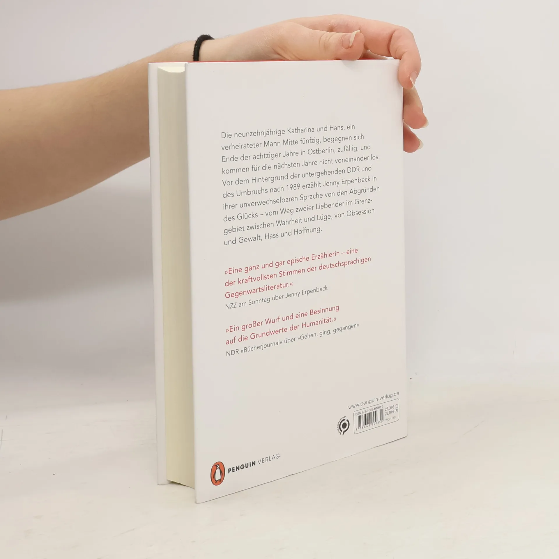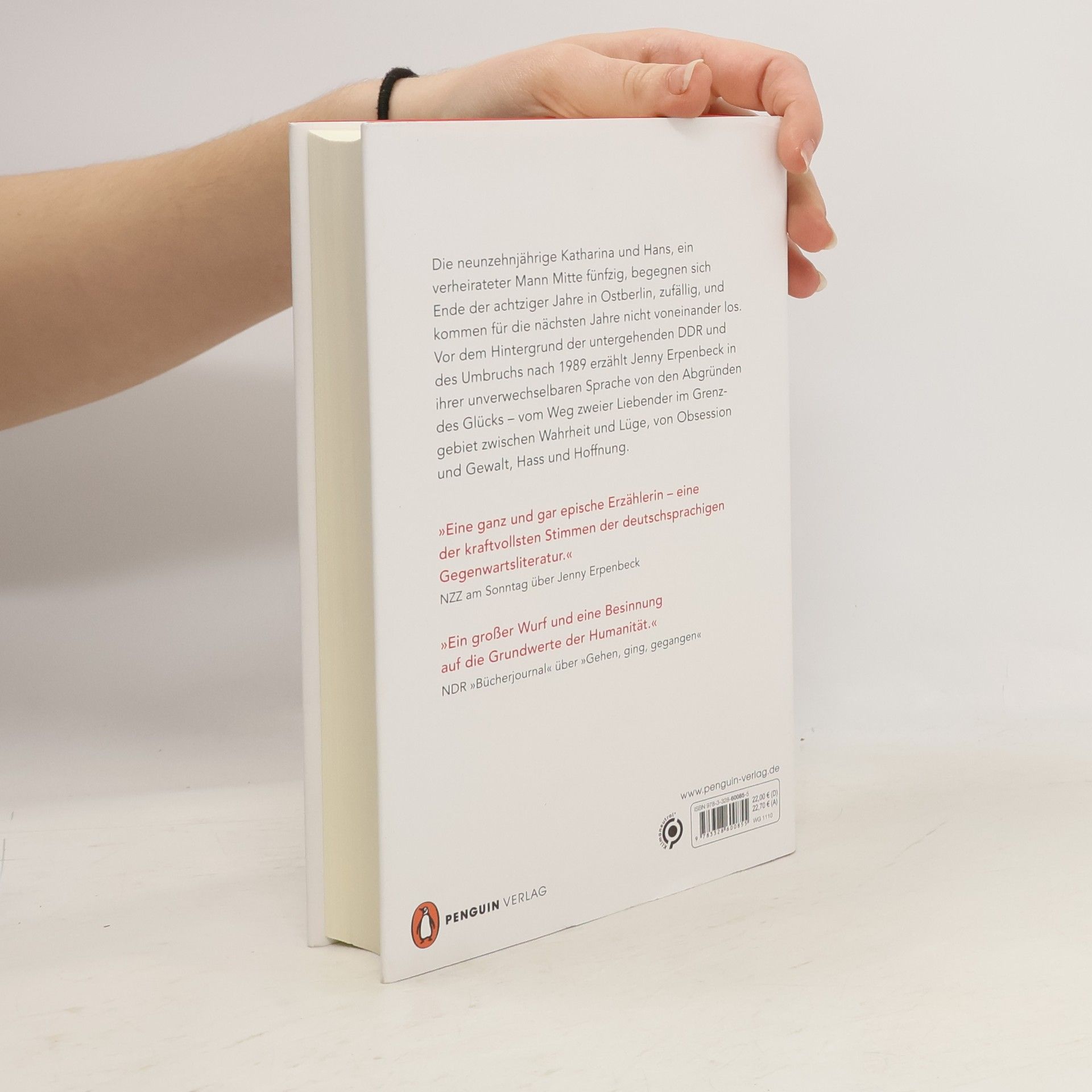 »Eine ganz und gar epische Erzählerin – eine der kraftvollsten Stimmen der deutschsprachigen Gegenwartsliteratur.« NZZ am Sonntag über Jenny Erpenbeck Die neunzehnjährige Katharina und Hans, ein verheirateter Mann Mitte fünfzig, begegnen sich Ende der achtziger Jahre in Ostberlin, zufällig, und kommen für die nächsten Jahre nicht voneinander los. Vor dem Hintergrund der untergehenden DDR und des Umbruchs nach 1989 erzählt Jenny Erpenbeck in ihrer unverwechselbaren Sprache von den Abgründen des Glücks – vom Weg zweier Liebender im Grenzgebiet zwischen Wahrheit und Lüge, von Obsession und Gewalt, Hass und Hoffnung. Alles in ihrem Leben verwandelt sich noch in derselben Sekunde, in der es geschieht, in etwas Verlorenes. Die Grenze ist immer nur ein Augenblick.
