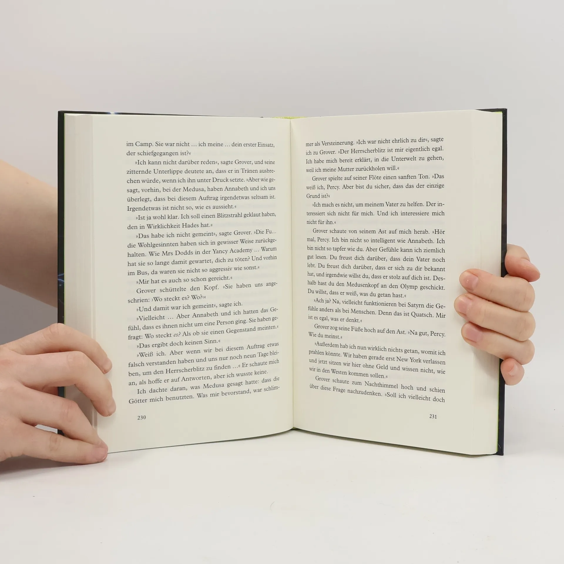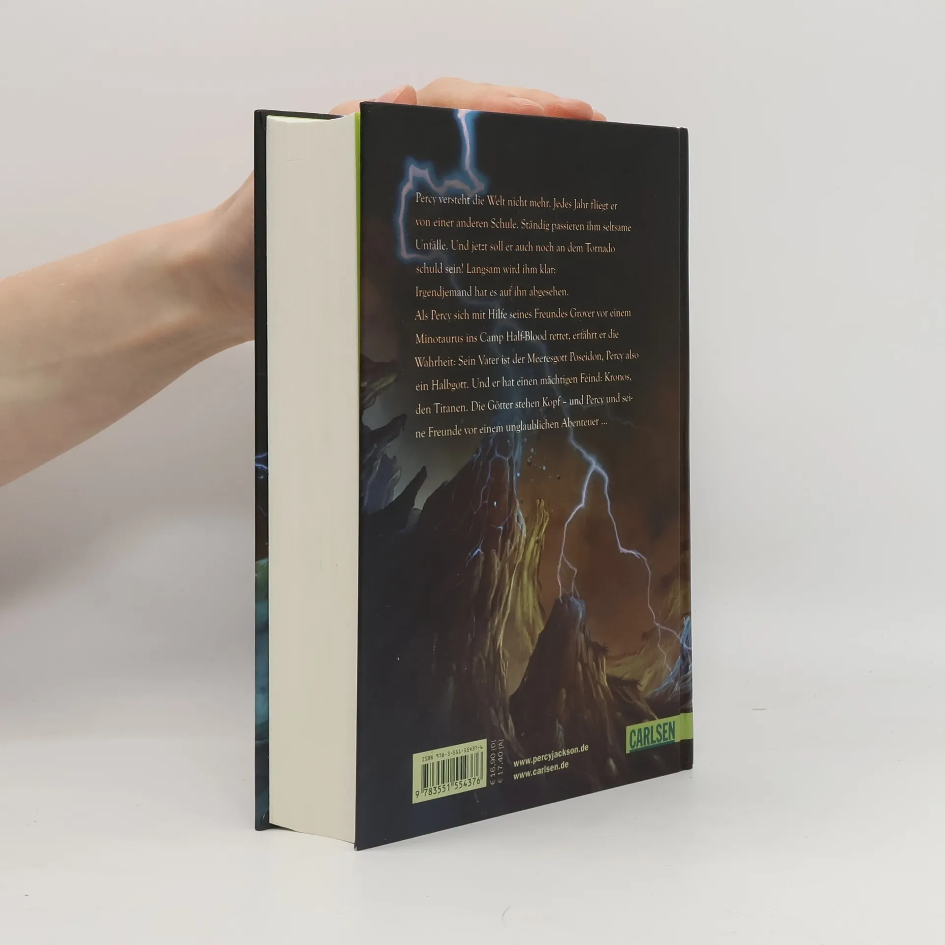 Percy versteht die Welt nicht mehr. Jedes Jahr fliegt er von einer anderen Schule. Ständig passieren ihm seltsame Unfälle. Und jetzt soll er auch noch an dem Tornado schuld sein! Langsam wird ihm klar: Irgendjemand hat es auf ihn abgesehen. Als Percy sich mit Hilfe seines Freundes Grover vor einem Minotaurus ins Camp Half-Blood rettet, erfährt er die Wahrheit: Sein Vater ist der Meeresgott Poseidon, Percy also ein Halbgott. Und er hat einen mächtigen Feind: Kronos, den Titanen. Die Götter stehen Kopf - und Percy und seine Freunde vor einem unglaublichen Abenteuer ...