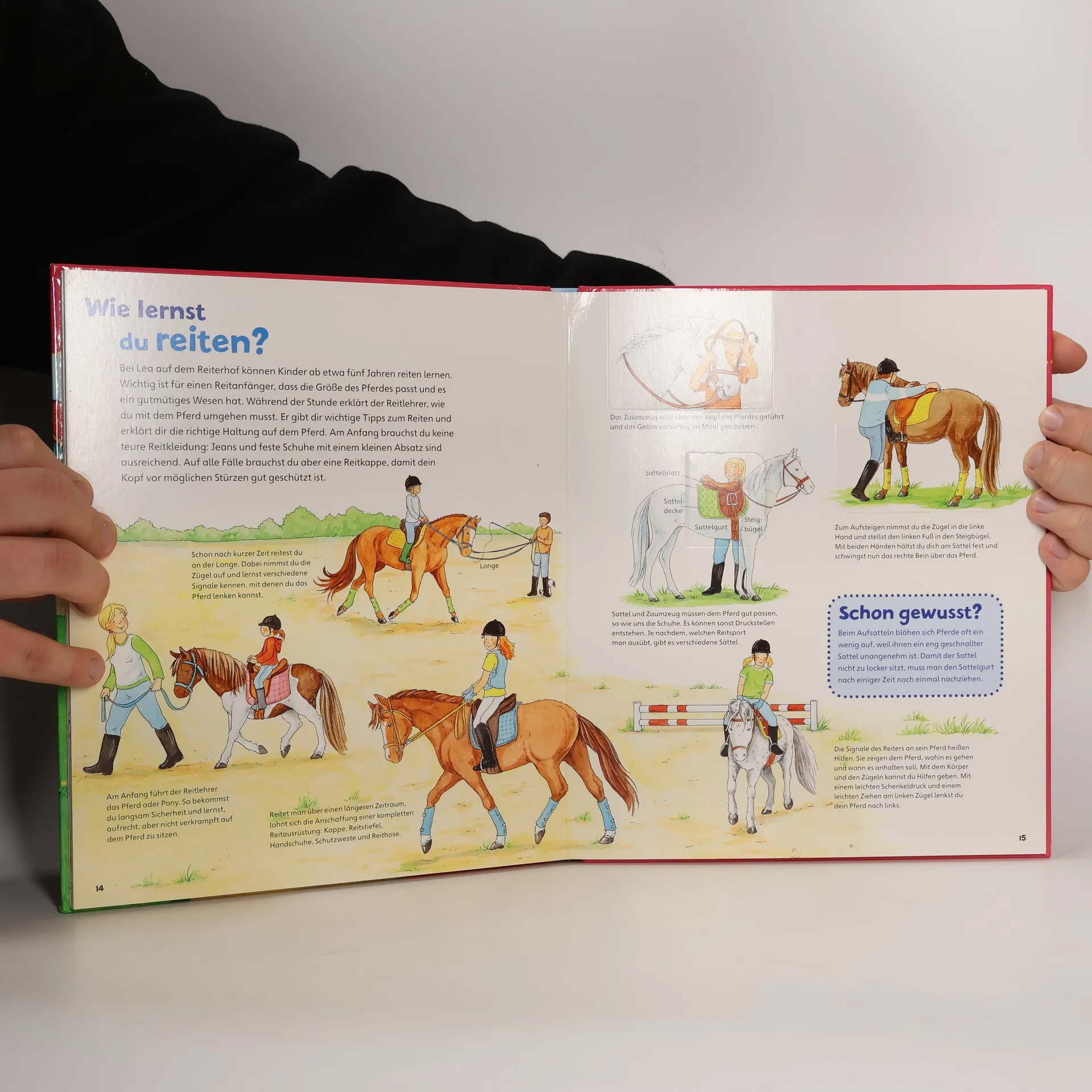 Ferien auf dem Reiterhof! Die Story führt direkt zum Tag der offenen Tür: Auf dem Reitplatz findet die erste Vorführung statt. Viele der Kinder und Jugendlichen haben ein Pflegepferd oder Pflegepony, um das sie sich regelmäßig kümmern. Neben dem Reiten müssen sie es striegeln. Für das Wohlbefinden der Tiere ist Lea verantwortlich. Als Pferdewirtin besorgt sie das Futter, kümmert sich um die Unterbringung und ruft den Tierarzt, wenn eines der Pferde krank ist. Wie sieht es im Stall aus? Wie pflegt man ein Pferd richtig? Wie verständigt es sich mit seinen Artgenossen? Welche Berufe gibt es rund um Pferde? Entdecker-Klappen, Spiele und Rätsel runden die informative Geschichte ab.