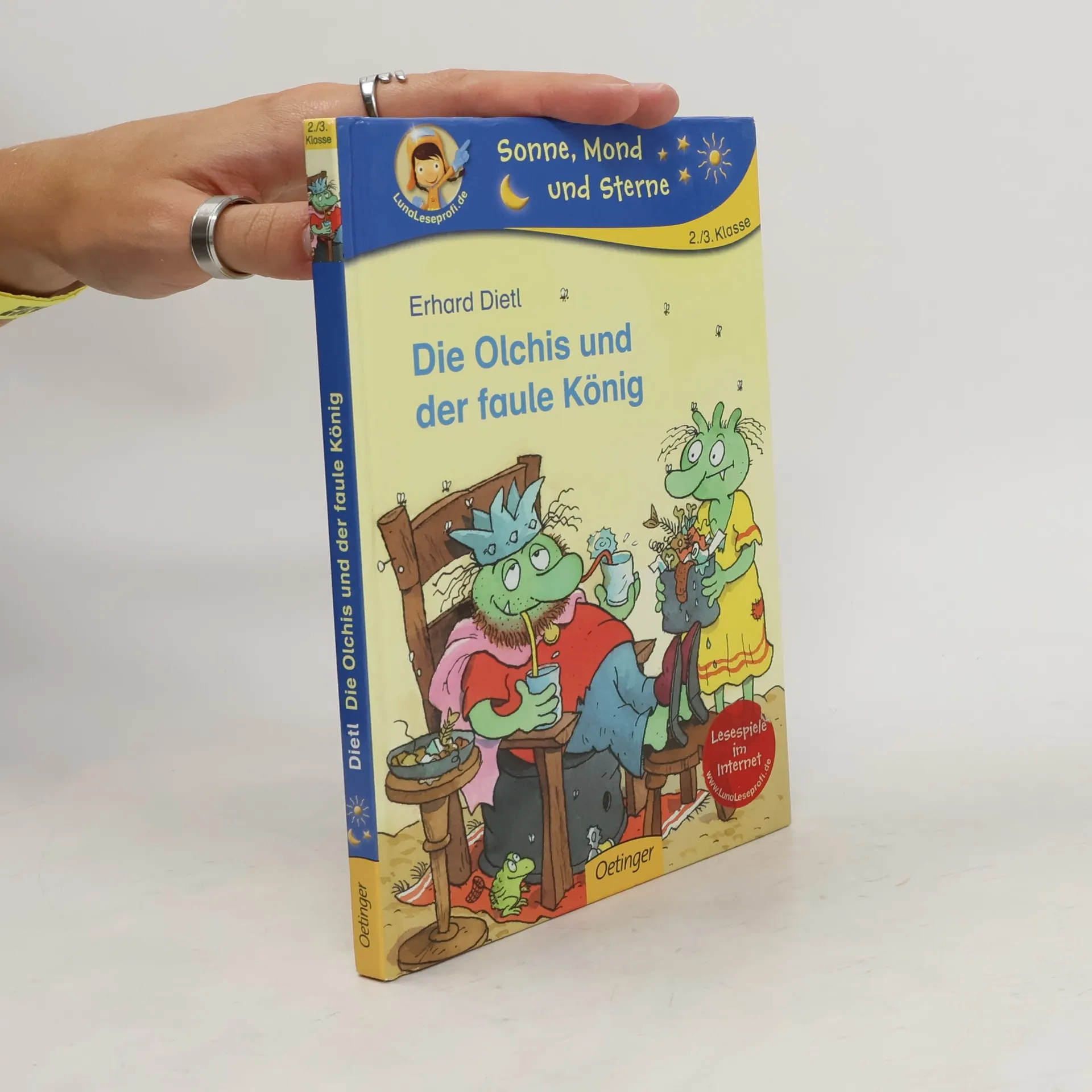 Hoher Besuch auf der Müllkippe! Doch der König geht den Olchis ganz schön auf den Wecker …Muffel-Furz-Teufel! Ist es denn zu glauben? Die Olchis bekommen Besuch von einem richtigen König! Olchi-Oma ist entzückt. Doch der unerwartete Gast lässt sich von vorne bis hinten bedienen und hält die Olchi-Familie mit seinen Extra-Wünschen ganz schön auf Trab. Bis Olchi-Opa schließlich der Kragen platzt. Denn wenn ein Gast sich so unverschämt benimmt, hat auch die engelhafteste Olchi-Geduld ein Ende!Das neunte Olchi-Erstlese-Abenteuer.Lesen lernen mit "Büchersterne" für die 2./3. einfacher Satzbau, fortgeschrittenes Textniveau und ein höherer Textanteil, der die Lesefähigkeit geübter Leseanfänger fördert.