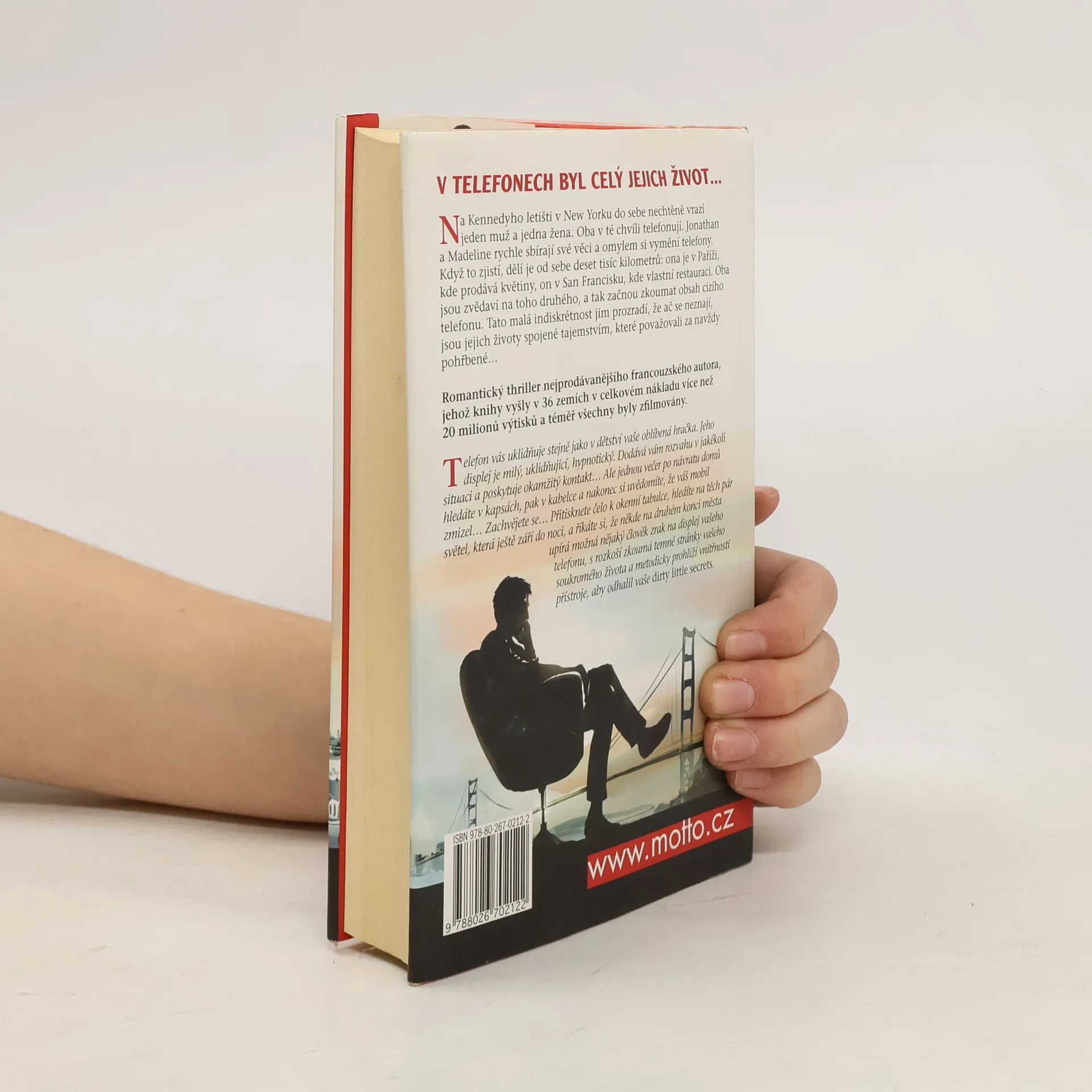 V telefonech byl celý jejich život… Na Kennedyho letišti v New Yorku do sebe nechtěně vrazí jeden muž a jedna žena. Oba v té chvíli telefonují. Jonathan a Madeline rychle sbírají své věci a omylem si vymění telefony. Když to zjistí, dělí je od sebe deset tisíc kilometrů: ona je v Paříži, kde prodává květiny, on v San Francisku, kde vlastní restauraci. Oba jsou zvědaví na toho druhého, a tak začnou zkoumat obsah cizího telefonu. Tato malá indiskrétnost jim prozradí, že ač se neznají, jsou jejich životy spojené tajemstvím, které považovali za navždy pohřbené… Romantický thriller nejprodávanějšího francouzského autora, jehož knihy vyšly v 35 zemích v celkovém nákladu více než 13 milionů výtisků a téměř všechny byly zfilmovány.