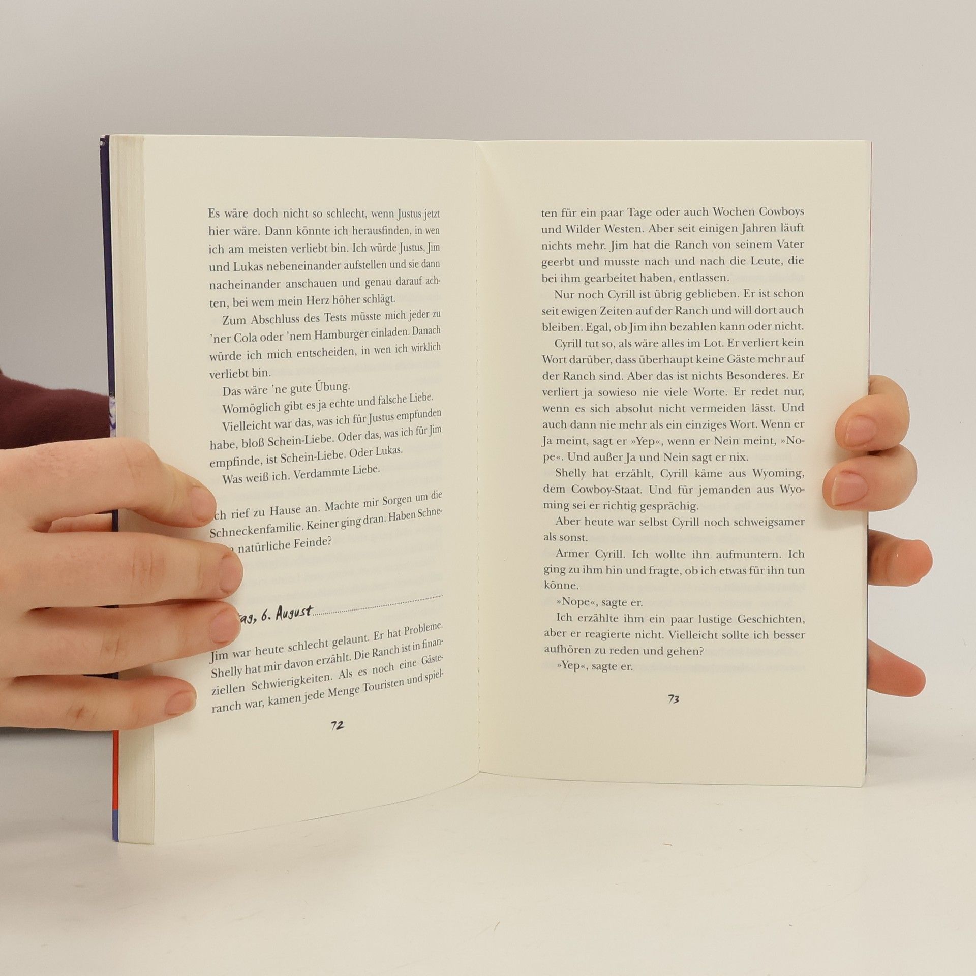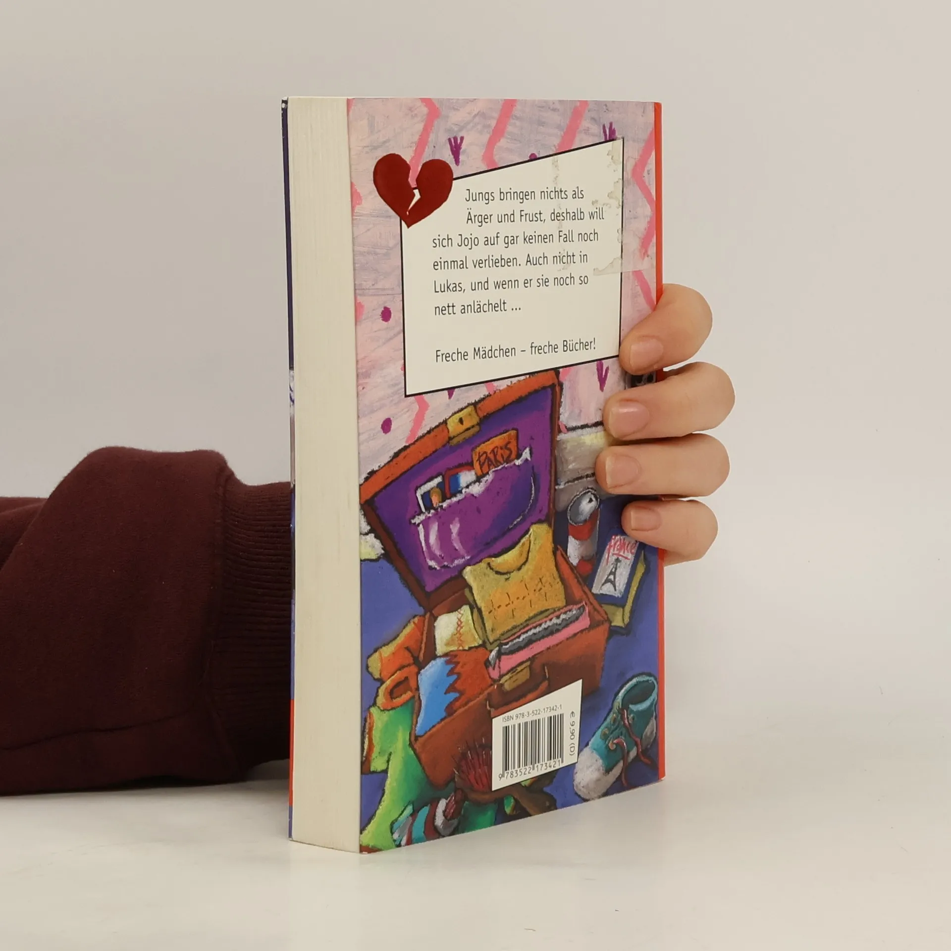 Jojo ist unglücklich, denn ihr geliebter Justus ist umgezogen und sie leidet unter Liebeskummer. Um sich abzulenken, verbringt sie die Ferien in Paris – allerdings nicht in Frankreich, sondern in Paris, Texas. Dies ist die erste Überraschung für Jojo. Die zweite ist Lukas, der im Flugzeug neben ihr sitzt und umwerfend lächelt. Doch wie kann sie sich in einen anderen Jungen verlieben, während sie noch an Justus denkt? Hortense Ullrich, die Autorin, wurde im Saarland geboren und wuchs in Bad Homburg auf. Nach ihrem Designstudium in Wiesbaden arbeitete sie in einer Werbe- und PR-Agentur in Frankfurt. Sie war Redakteurin und Chefredakteurin verschiedener Fachzeitschriften, bevor sie sich dem Schreiben von Drehbüchern widmete. Nach acht Jahren in New York lebt sie heute mit ihrer Familie in Bremen und schreibt Drehbücher für Comedies, Sketche und Kinderserien. In einer Leseprobe beschreibt Jojo, wie sie am Abflugschalter ankommt und ungeschickt einen Jungen in der Warteschlange anrempelt, der einen Becher Cola in der Hand hält. Die Cola landet auf seinem Pullover, während ihre Mutter und ihr Bruder Flippi weiterlaufen. Jojo entschuldigt sich mit einem „Hups“, was der Junge cool kommentiert. Jojo findet ihn attraktiv und ist gleichzeitig verwirrt über ihre Gefühle.