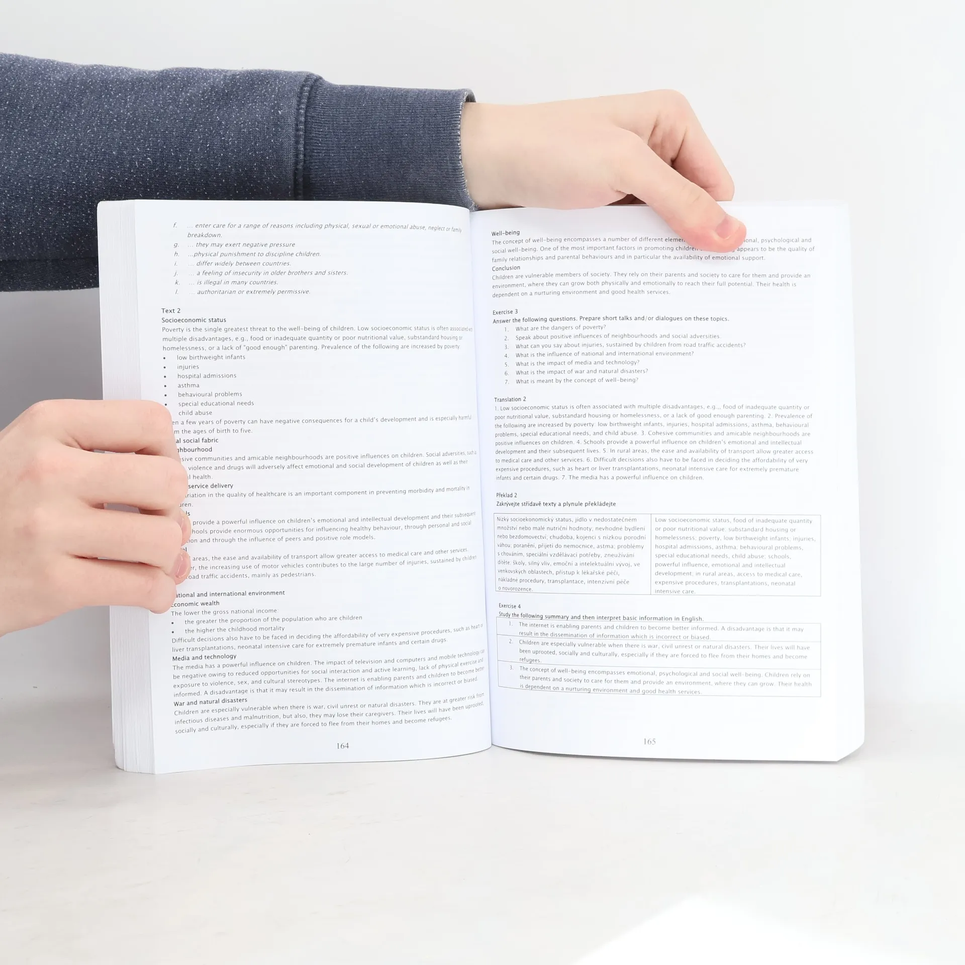 Učebnice Angličtina v pediatrii je určena pediatrům, studentům medicíny a ošetřovatelství, dětským sestrám a pečovatelům, kteří chtějí zlepšit své jazykové dovednosti pro život, studium nebo práci v anglicky mluvících zemích a potřebují číst odborné texty v angličtině. Učitelé mohou vybírat z různých textů a cvičení podle jazykové úrovně a odborných zájmů studentů. První lekce se zaměřují na těhotenství, předporodní péči, porod a péči o novorozence, včetně kojení, zavádění pevné stravy a podávání léků. Dále se probírá zdraví dětí, infekční nemoci, bolesti břicha, kožní problémy a bezpečnost dítěte, včetně první pomoci a kardiopulmonální resuscitace. Následující lekce se věnují dětskému vývoji, anamnéze, vyšetřování a problémům učení, jako jsou poruchy sluchu a zraku. Dále se řeší urgentní stavy, životní podpora novorozenců, zdravotní problémy předčasně narozených a gastrointestinální poruchy. Kniha také pokrývá otázky růstu a puberty.