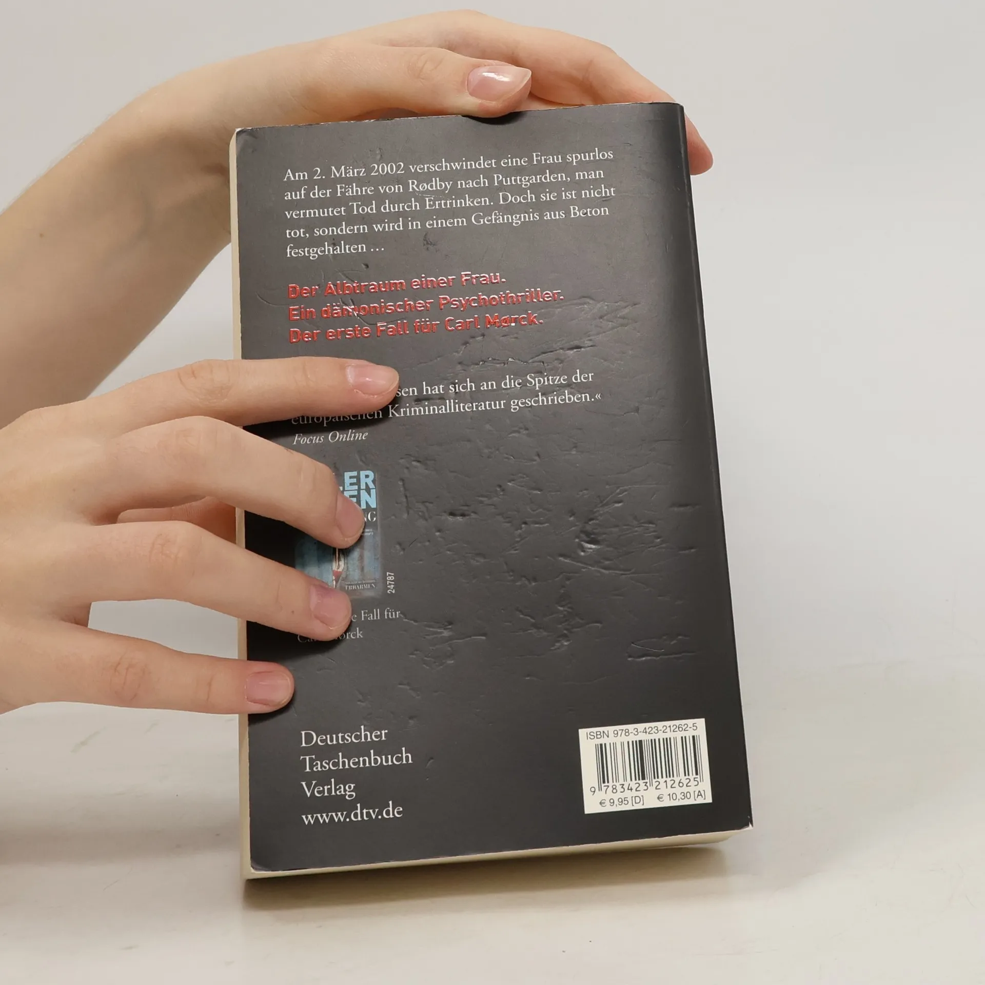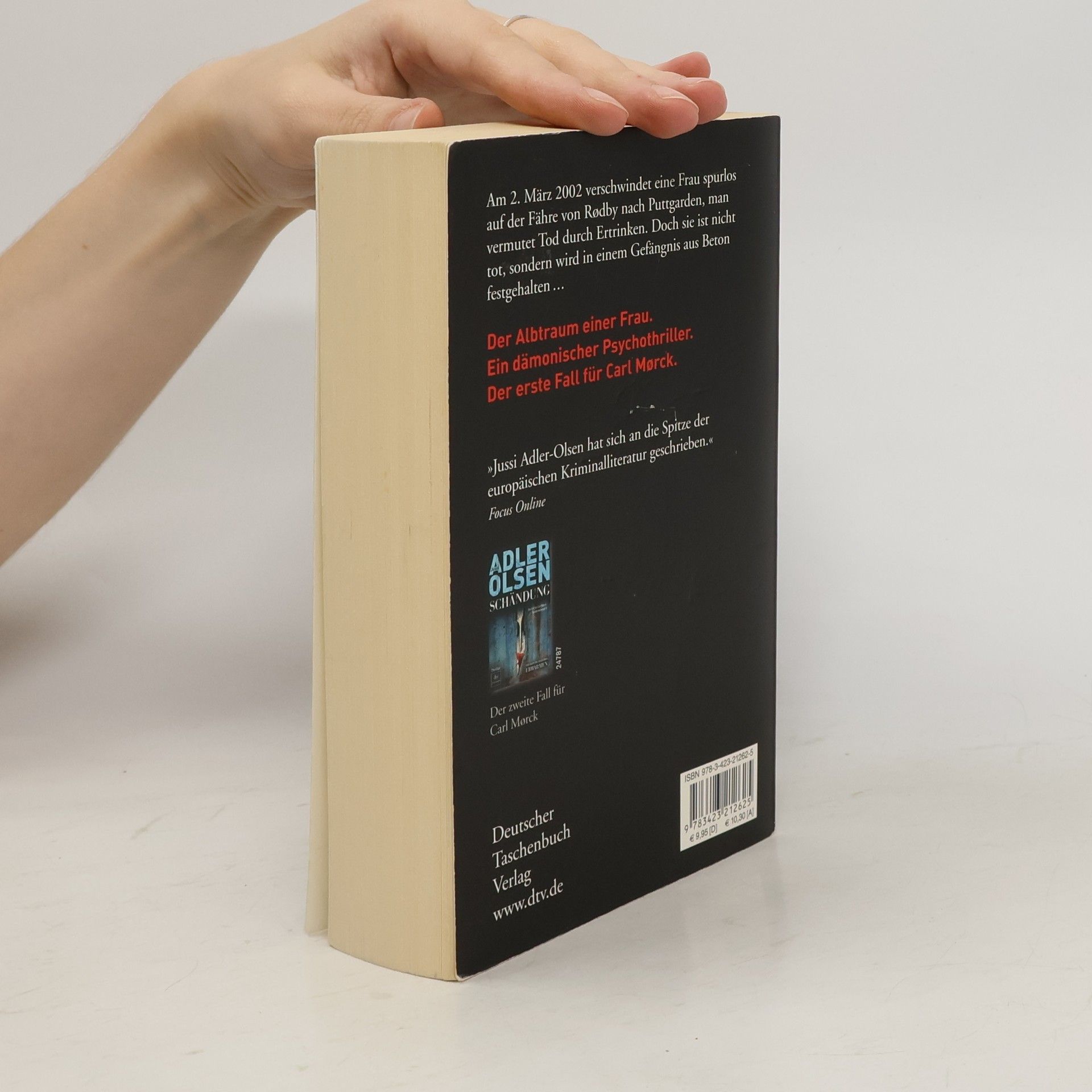 Ein dämonischer Psychothriller und der erste Fall für Carl Mørck vom Sonderdezernat Q für unaufgeklärte Morde der Kopenhagener Polizei. Am 2. März 2002 verschwindet eine Frau auf der Fähre von Rødby nach Puttgarden, und man vermutet, dass sie ertrunken ist. Doch sie lebt und wird in einem Betonverlies gefangen gehalten. Carl Mørck, der neu ernannte Spezialermittler, ist anfangs wenig begeistert von seinem Job, da die Erfolgsquote bei Cold Cases schlecht ist. Sein syrischer Assistent Hafez el-Assad hingegen ist hochmotiviert und entschlossen, den Fall der verschwundenen Politikerin zu lösen. Unbemerkt von ihnen beginnt ein atemloser Wettlauf gegen die Zeit. Der erste Band der Spiegel-Bestseller-Reihe um Carl Mørck und seinen unkonventionellen Assistenten Assad überrascht mit spannenden Wendungen und einem packenden Erzählstil. Kritiker loben das Buch als hart und atmosphärisch dicht, sowie als einen außergewöhnlich spannenden Thriller, der bis zur letzten Seite fesselt. Jussi Adler-Olsen wird mit seiner Erzählweise mit Größen wie Dean Koontz und Stieg Larsson verglichen und begeistert Leser mit seiner Fähigkeit, die Ermittlungen rasant voranzutreiben. Neben der Carl-Mørck-Reihe sind auch weitere Titel des Autors bei dtv erschienen.