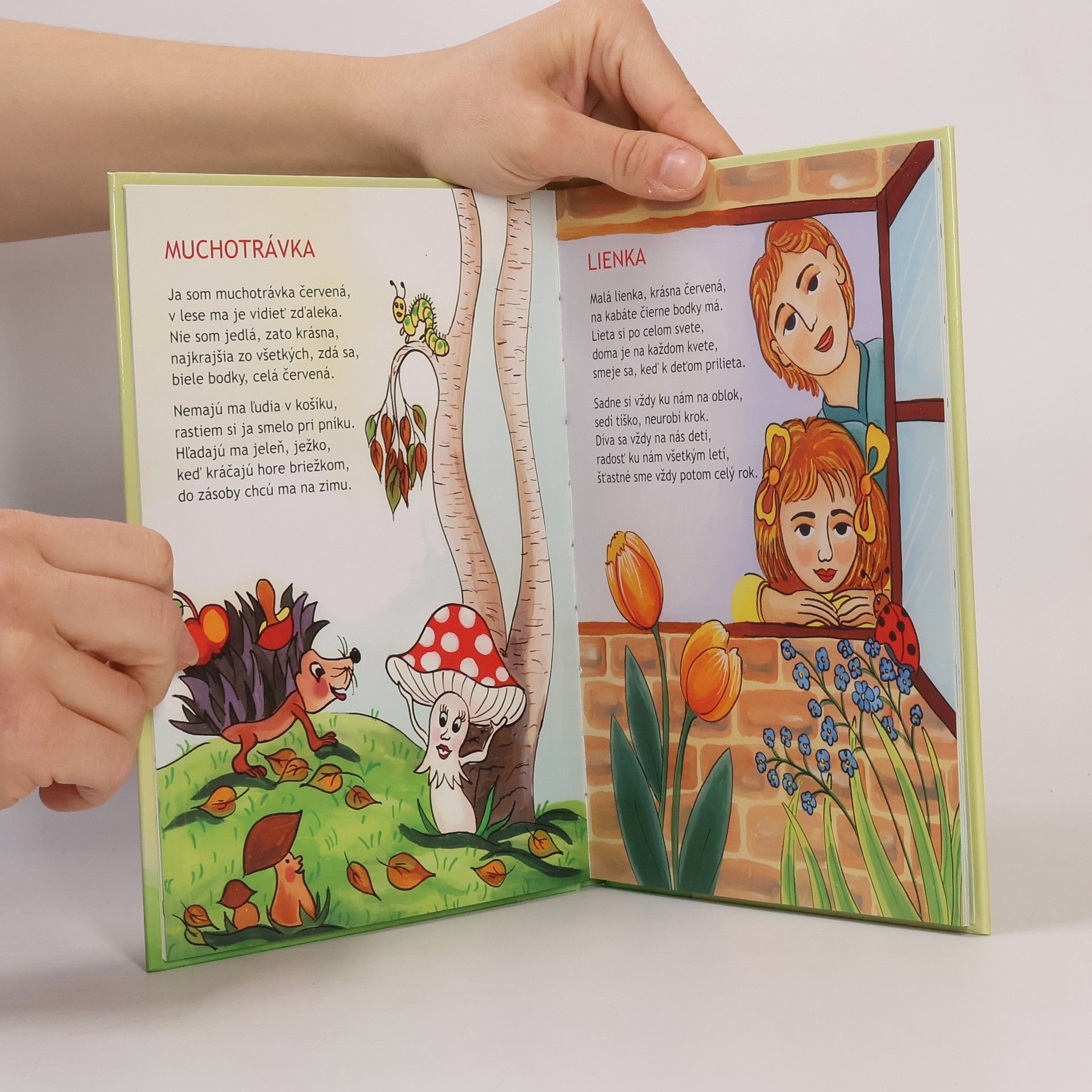 Básničkové príbehy o zvieratkách, kvetoch a liečivých rastlinách. V knihe nájdete náučné, krásne ilustrované básničkové príbehy na témy: lopúch, harmanček, muchotrávka, lienka, slnečnica, krtko, jašterica, svätojánske mušky, líška, ďateľ, vrabčiak, bocian, lúčny koník, žabky, vĺčok, zajko, sýkorky, vrana, lesné mravce, pavúky, kačky, vlnky žblnky, konvalinky a modré zvonce, vážka, cvrček, myšky, veverička, pník klebetník a s malými čitateľmi sa rozlúči medveď Max.