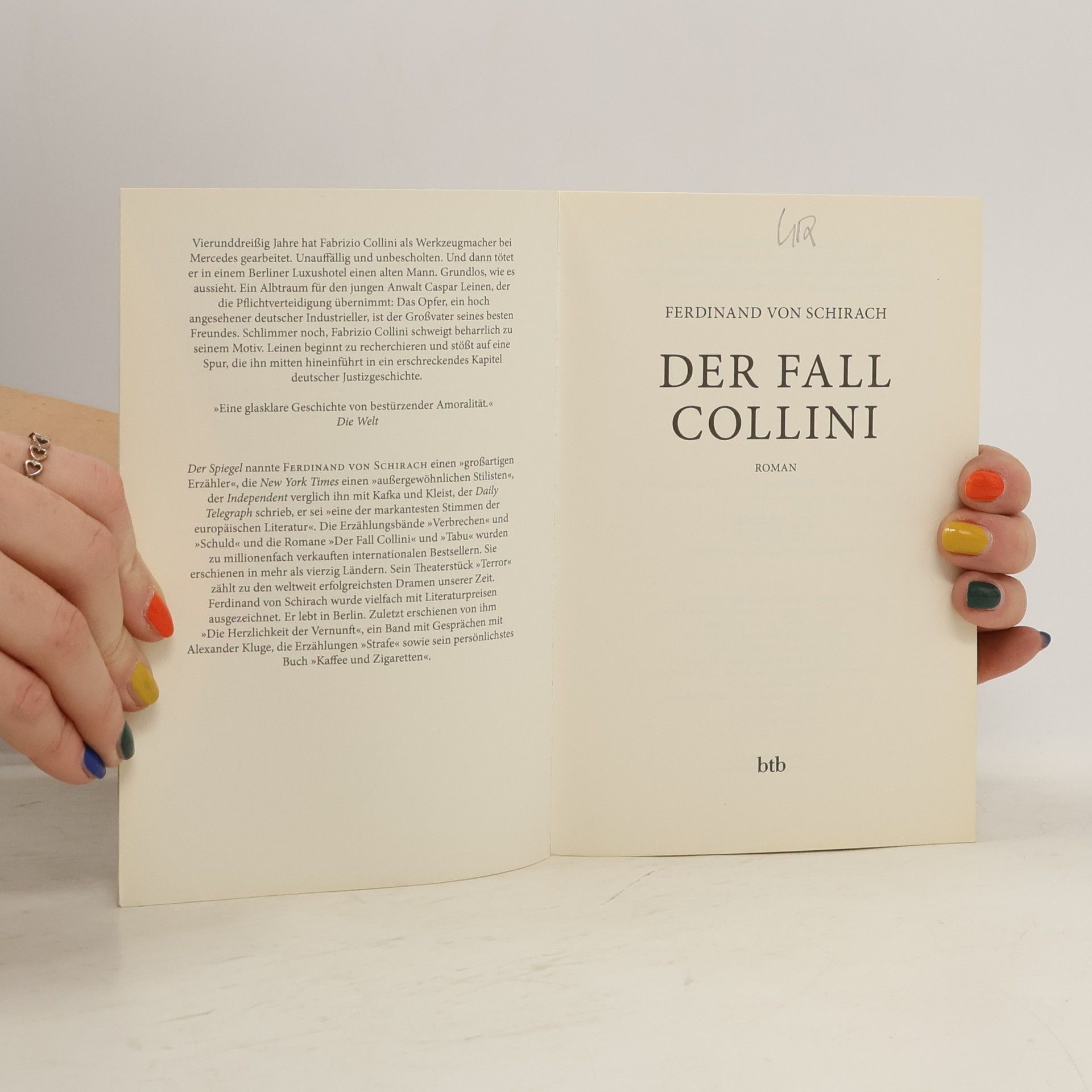 Was treibt einen Menschen, der sich ein Leben lang nichts hat zuschulden kommen lassen, zu einem Mord? Vierunddreißig Jahre hat Fabrizio Collini als Werkzeugmacher bei Mercedes gearbeitet. Unauffällig und unbescholten. Und dann tötet er in einem Berliner Luxushotel einen alten Mann. Grundlos, wie es aussieht. Ein Albtraum für den jungen Anwalt Caspar Leinen, der die Pflichtverteidigung übernimmt: Das Opfer, ein hoch angesehener deutscher Industrieller, ist der Großvater seines besten Freundes. Schlimmer noch, Fabrizio Collini schweigt beharrlich zu seinem Motiv. Leinen beginnt zu recherchieren und stößt auf eine Spur, die ihn mitten hineinführt in ein erschreckendes Kapitel deutscher Justizgeschichte.