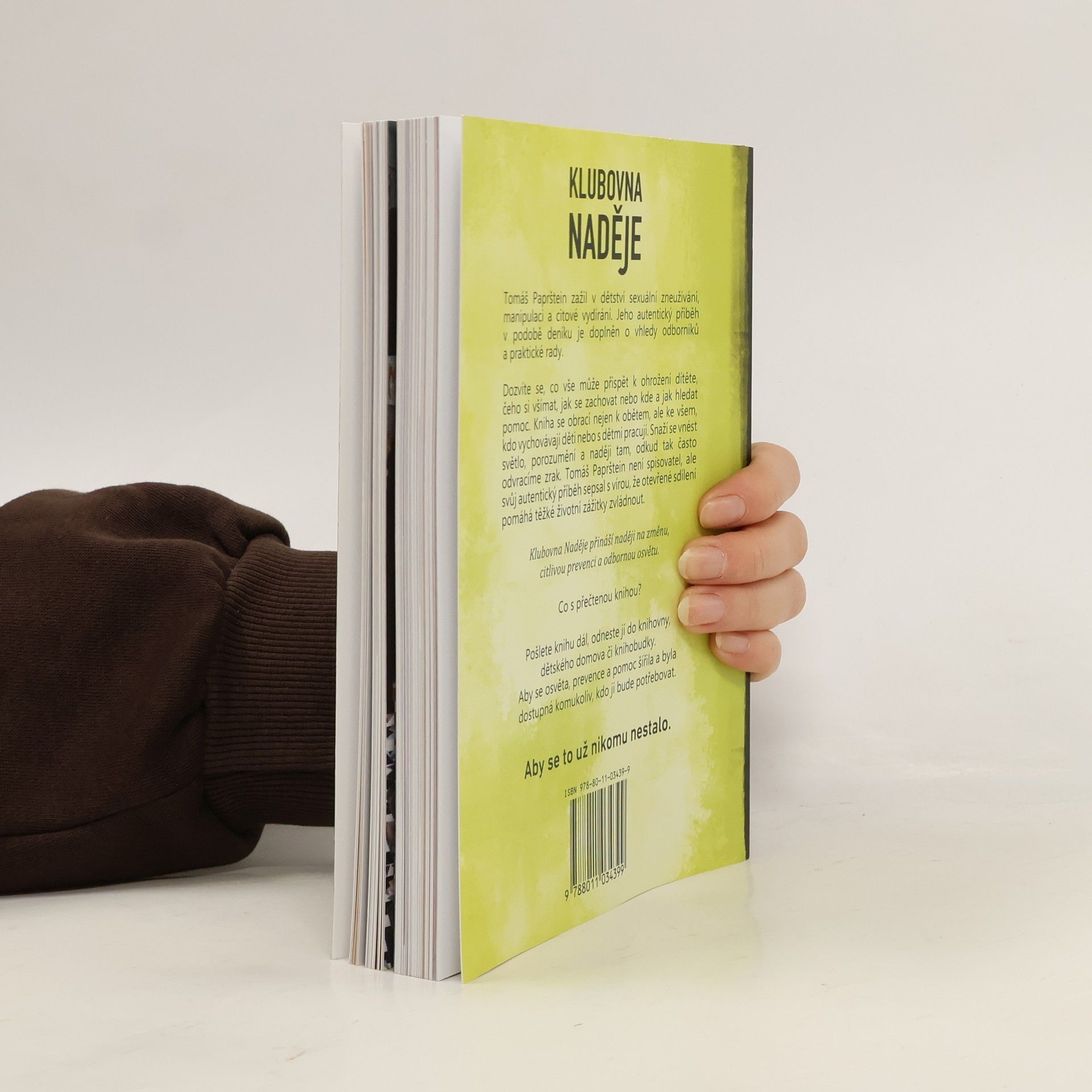 Tomáš Paprštein zažil v dětství sexuální zneužívání, manipulaci a citové vydírání. Jeho autentický příběhv podobě deníku je doplněn o vhledy odborníků a praktické rady. Dozvíte se, co vše může přispět k ohrožení dítěte, čeho si všímat, jak se zachovat nebo kde a jak hledat pomoc. Kniha se obrací nejen k obětem, ale ke všem, kdo vychovávají děti nebo s dětmi pracují. Snaží se vnést světlo, porozumění a naději tam, odkud tak často odvracíme zrak. Tomáš Paprštein není spisovatel, ale svůj autentický příběh sepsal s vírou, že otevřené sdílení pomáhá těžké životní zážitky zvládnout.Klubovna Naděje přináší naději na změnu, citlivou prevenci a odbornou osvětu.Co s přečtenou knihou?Pošlete knihu dál, odneste ji do knihovny, dětského domova či knihobudky. Aby se osvěta, prevence a pomoc šířila a byla dostupná komukoliv, kdo ji bude potřebovat.Aby se to už nikomu nestalo.Knihu je možné koupit zde:kniha.klubovnanadeje.cz