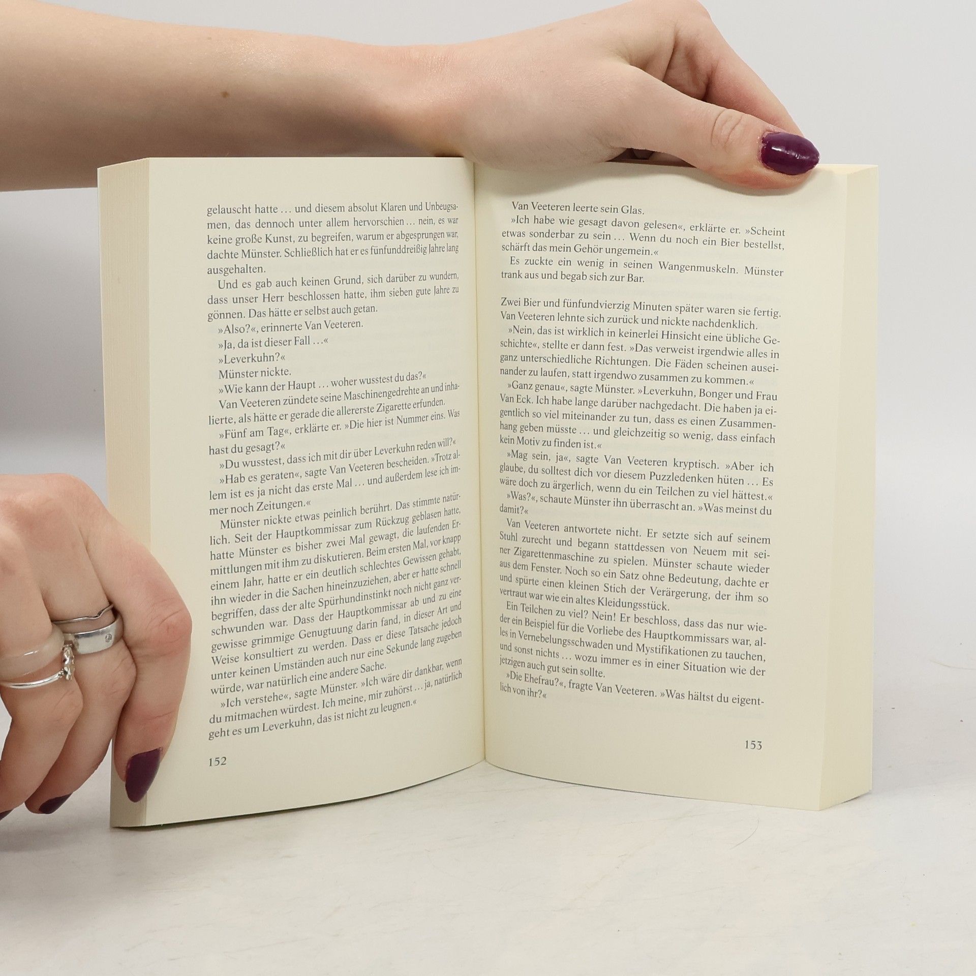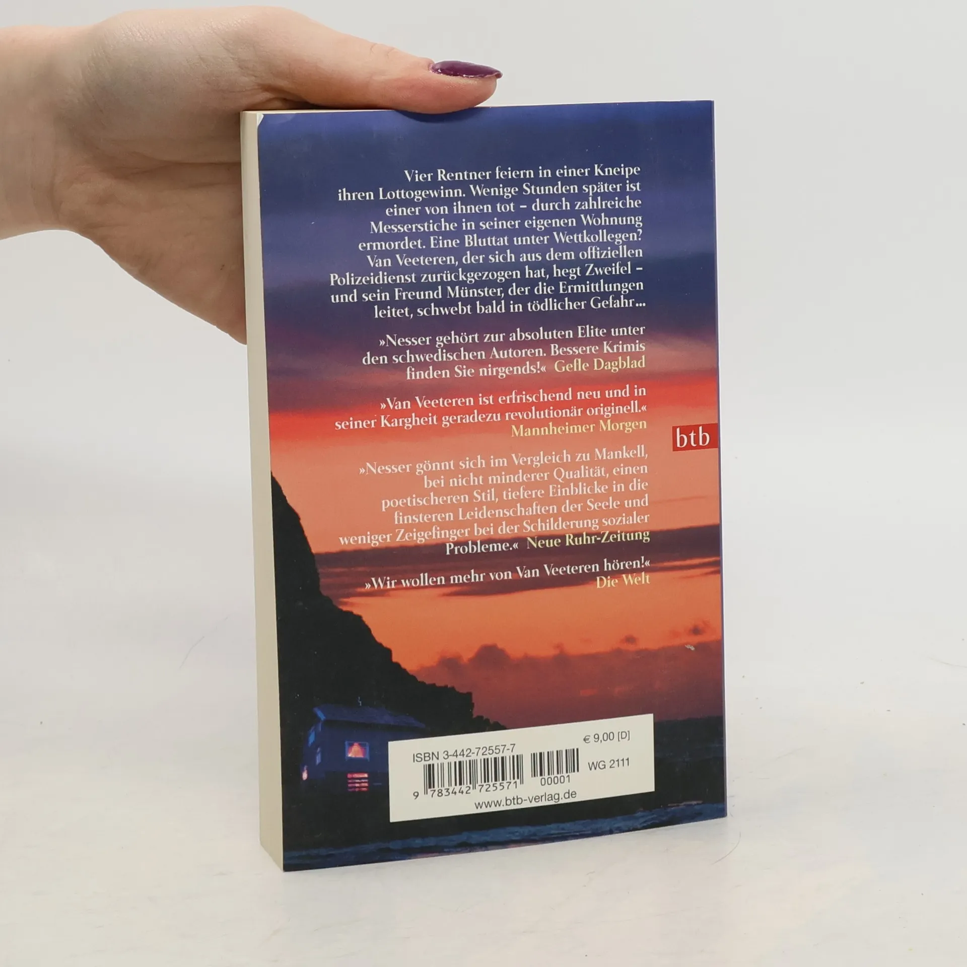 Vier Rentner feiern in einer Kneipe ihren Lottogewinn. Reichlich angetrunken machen sich die vier auf den Heimweg. Stunden später ist einer von ihnen tot, hinterrücks erstochen in seiner eigenen Wohnung. Kommissar Münster übernimmt den Fall, denn Kommissar Van Veeteren hat sich für ein Jahr beurlauben lassen und arbeitet in einem Antiquariat. Doch keiner seiner Kollegen glaubt, dass er von der Ermittlungsarbeit lassen kann. Und in der Tat holt sich Münster schon bald Rat bei Van Veeteren, denn der Fall wird immer mysteriöser. So präsentiert sich die Witwe des Opfers als Täterin und legt ein Geständnis ab. Van Veeteren ist überzeugt, dass sie lügt. „Derart eigenwillig und eigenständig erzählt kaum jemand Kriminalgeschichten.“ WDR - „Wir wollen mehr von Van Veeteren hören!“ Die Welt