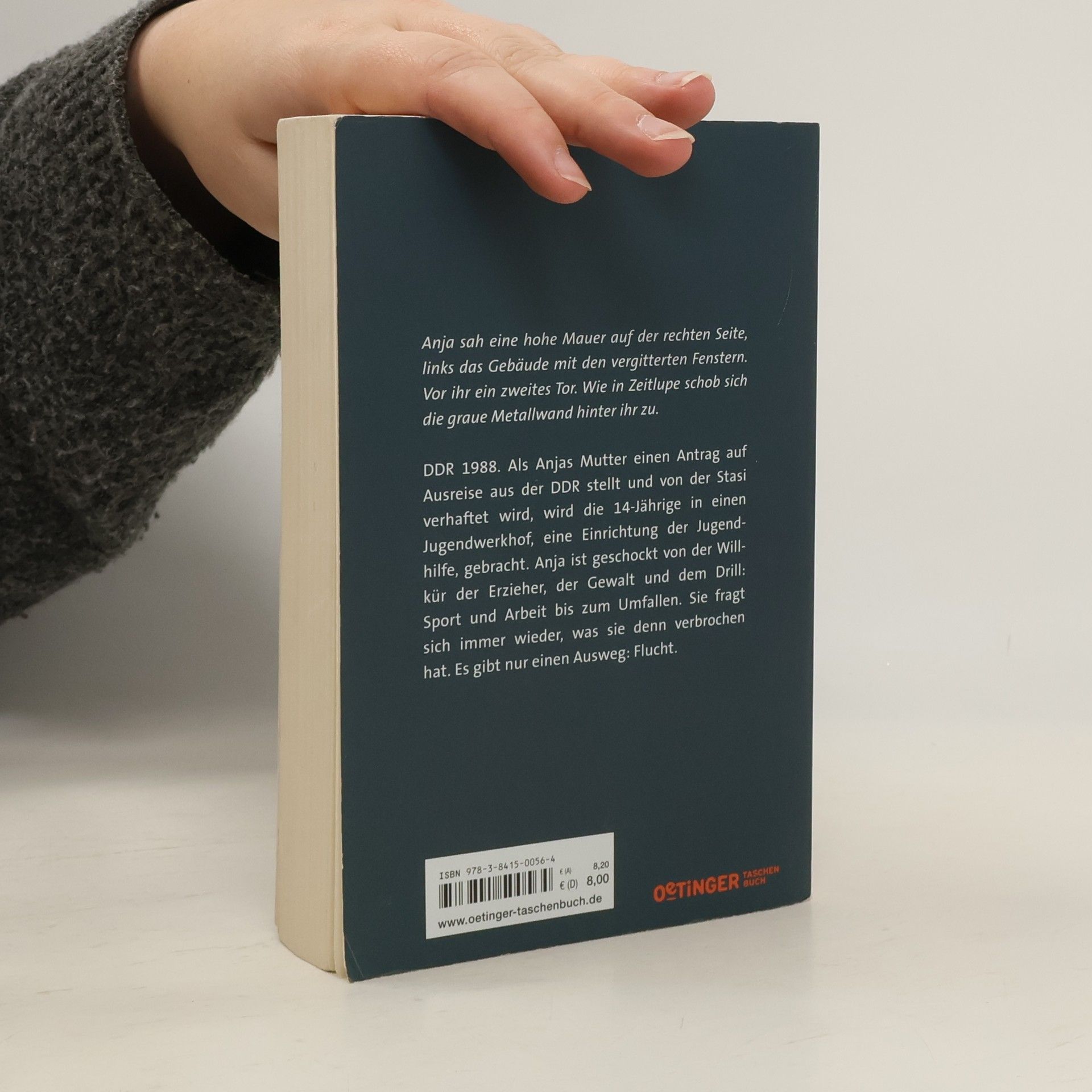 Niemals aufgeben! Flucht aus dem Erziehungsheim. Anjas Mutter stellt einen Ausreiseantrag aus der DDR und wird von der Stasi verhaftet. Die 14-jährige kommt in einen Jugendwerkhof, eine Einrichtung der Jugendhilfe. Geschockt von der Willkür der Erzieher, der Gewalt und dem Drill, will Anja bald nur noch fliehen. Tatsächlich gelingt ihr die Flucht, aber nur für kurze Zeit. Anja fragt sich immer wieder, was sie eigentlich verbrochen hat. Als sie eines Tages ausrastet, bringt man sie nach Torgau, in eine geschlossene Einrichtung. Dort lernt sie Tom kennen, der wie sie nicht aufgeben will. Ein spannender Roman über Willkür und Gewalt im Jugendwerkhof in der DDR. Sorgfältig recherchiert von der Autorin, die selbst in der Bürgerrechtsbewegung engagiert war.