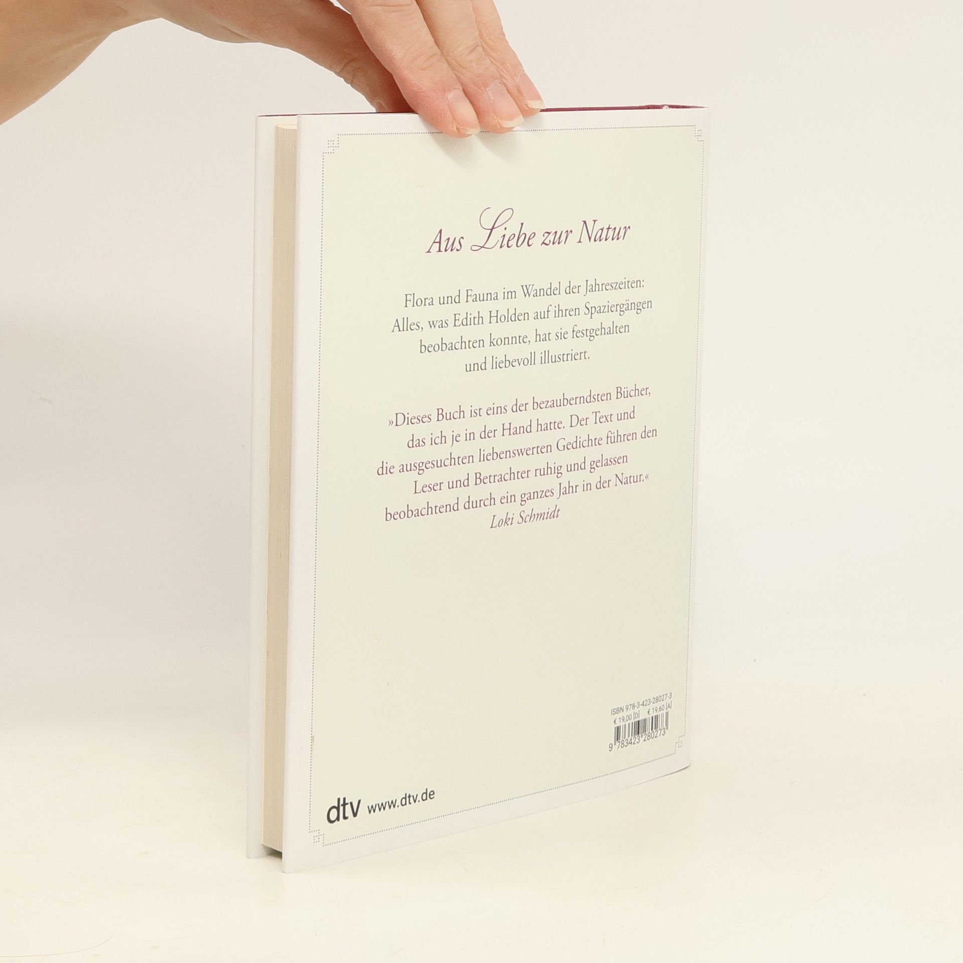 »Dieses Buch ist eins der bezauberndsten Bücher, das ich je in der Hand hatte.« Loki Schmidt Flora und Fauna ihrer englischen Heimat im Wandel der Jahreszeiten: Alles, was Edith Holden auf ihren Spaziergängen und Wanderungen beobachten konnte, hat sie sorgfältig niedergeschrieben, ihre Lieblingsgedichte und Sprüche zur Jahreszeit hinzugesetzt, die Monatsnamen erläutert, vor allem aber ihre Eintragungen mit eigenen Aquarellen von Pflanzen und Tieren illustriert: Vögeln, Schmetterlingen, Bienen, Blumen und Kräutern. Blatt für Blatt zeugt von ihrer Liebe zur Natur und ihrer Begabung, das Erlebte empfindungsreich zu vermitteln.