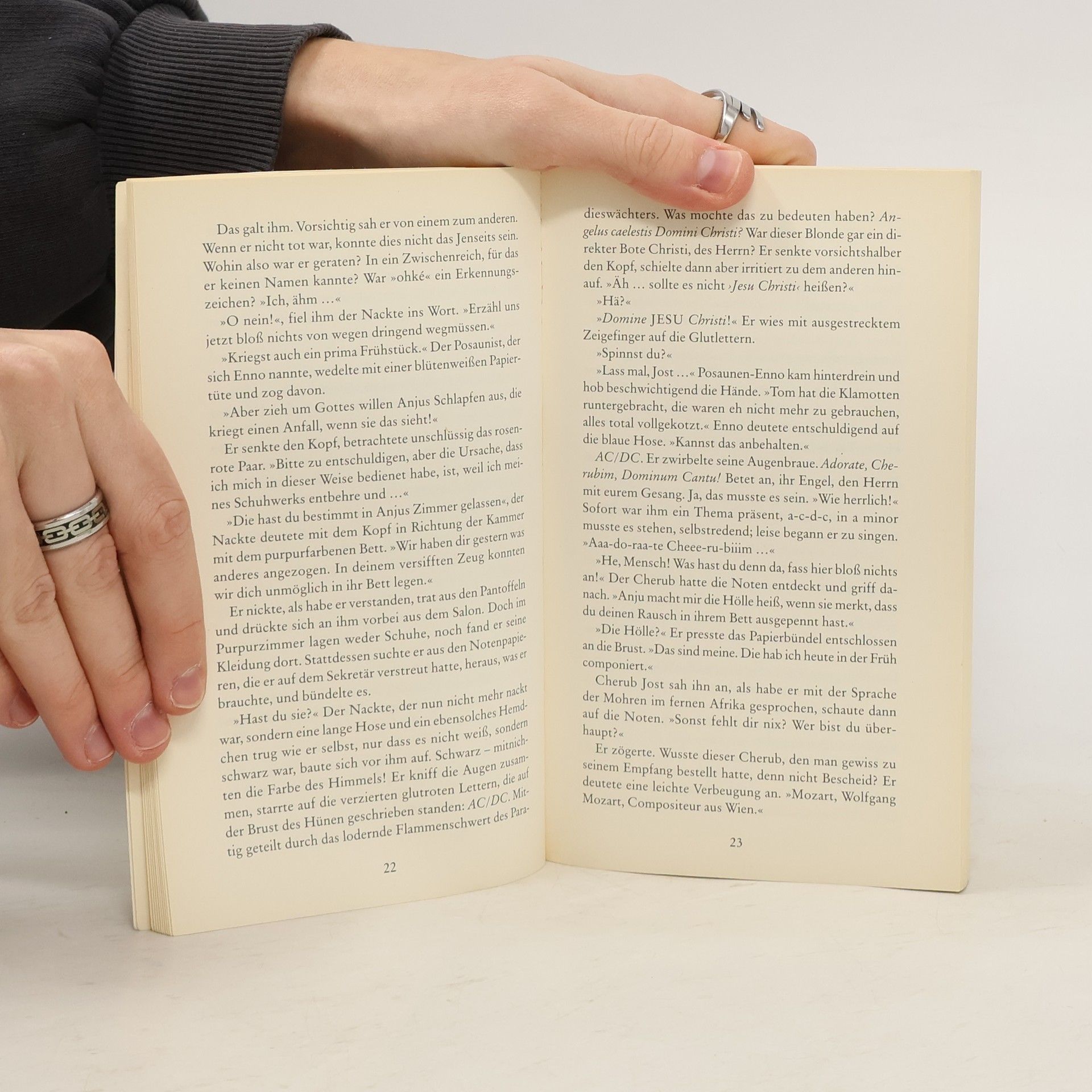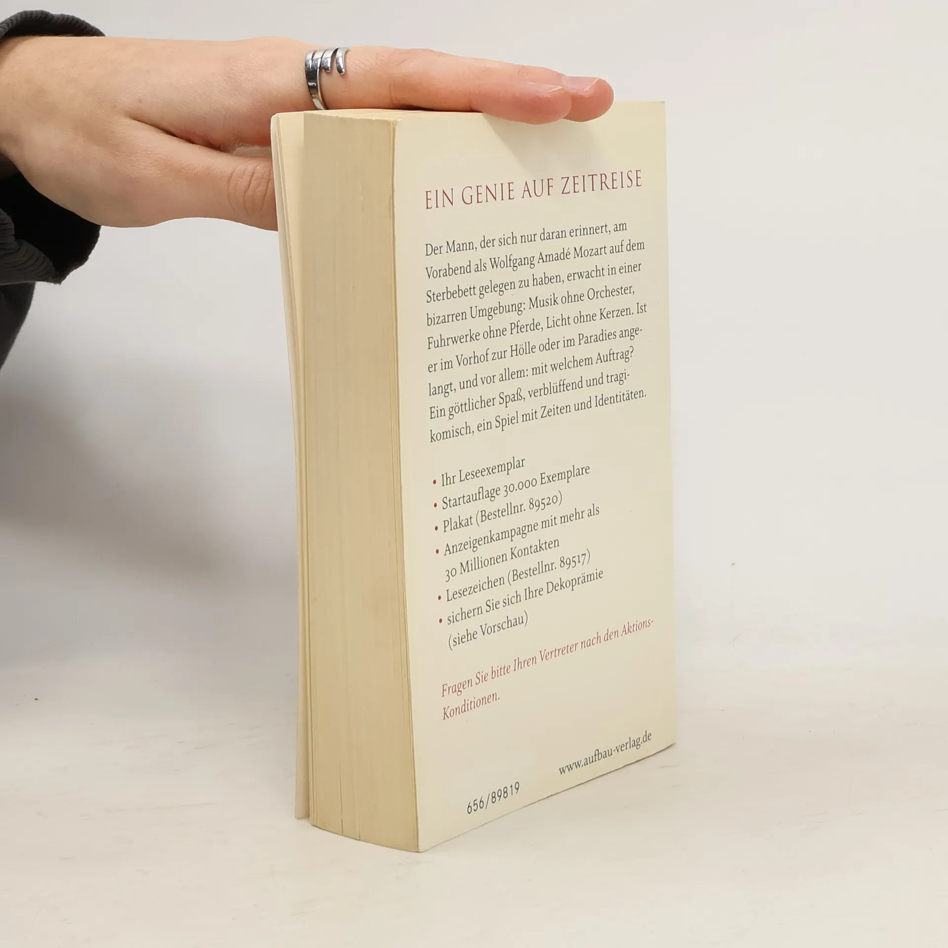 Der Mann, der sich nur daran erinnert, am Vorabend als Wolfgang Amadé Mozart auf dem Sterbebett gelegen zu haben, kann sich die bizarre Umgebung nicht erklären, in der er erwacht: Musik ohne Orchester, Fuhrwerke ohne Pferde, Licht ohne Kerzen. Ist er im Vorhof zur Hölle oder im Paradies angelangt, und vor allem: mit welchem Auftrag? Ein göttlicher Spaß, verblüffend und tragikomisch, ein Spiel mit Zeiten und Identitäten. „Dieses Buch ist wie eine Umarmung.“ Robert Schneider Am Vorabend noch hat er auf dem Sterbebett gelegen. Nun erwacht Wolfgang Amadé Mozart an einem unbekannten Ort und - wie ihm nach und nach klar wird - in einer fremden Zeit. Die Ungeheuerlichkeit seiner Zeitreise ins Jahr 2006 kann er sich nur mit einem göttlichen Auftrag erklären: Er soll endlich sein Requiem beenden. Als wunderlicher Kauz und lebender Anachronismus irrt Wolfgang durch das moderne Wien, scheitert an U-Bahntüren und fehlenden Ausweisen. Einzig die Musik dient ihm als Kompaß, um sich in der erschreckend veränderten Welt zu orientieren. Zur Seite stehen ihm ein polnischer Stehgeiger, das Mädchen Anju und seine Lust, hergebrachte Harmonien auf den Kopf zu stellen. Doch je länger sich Wolfgang in der fremden Zeit aufhält, desto drängender wird die Frage, was ihn erwartet, wenn er das Requiem vollendet hat. „Solange es nur Musik gab, war er bereit, in jeder Welt zurechtzukommen.“
