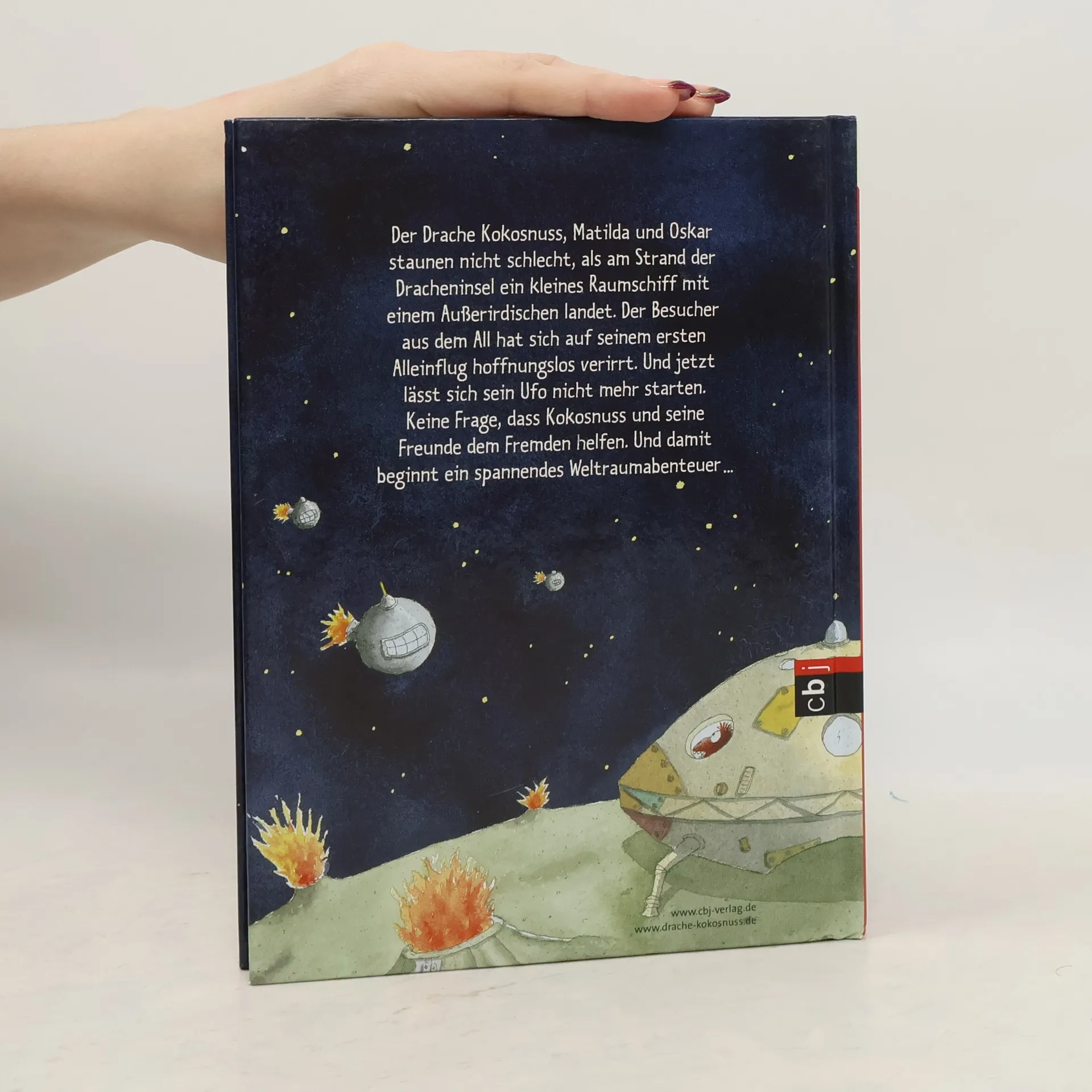 Der kleine Drache Kokosnuss, Stachelschwein Matilda und Fressdrache Oskar staunen nicht schlecht, als am Strand der Dracheninsel - direkt vor ihren Füßen - ein Raumgleiter mit einem kleinen Außerirdischen landet. Der Besucher aus dem All hat sich auf seinem ersten Alleinflug hoffnungslos verirrt - und jetzt lässt sich sein Raumgleiter nicht mehr starten. Kokosnuss & Co. versprechen, dem gestrandeten Außerirdischen zu helfen und ihn nach Hause zu begleiten. Dabei geraten die drei Freunde wieder in ein spannendes Abenteuer, das diesmal in den Weiten des Weltraums spielt. Die Geschichten über die aufregenden Abenteuer, die der kleine Drache Kokosnuss mit seinen Freunden erlebt, sind inzwischen wahre Kinderbuchklassiker. Ingo Siegner schreibt über Freundschaft und Mut und fügt liebenswert-originelle Illustrationen hinzu. Die »Dein-Spiegel-Bestseller«-Reihe eignet sich perfekt zum Vor- und Selberlesen. Ausstattung: Mit fbg. Illustrationen