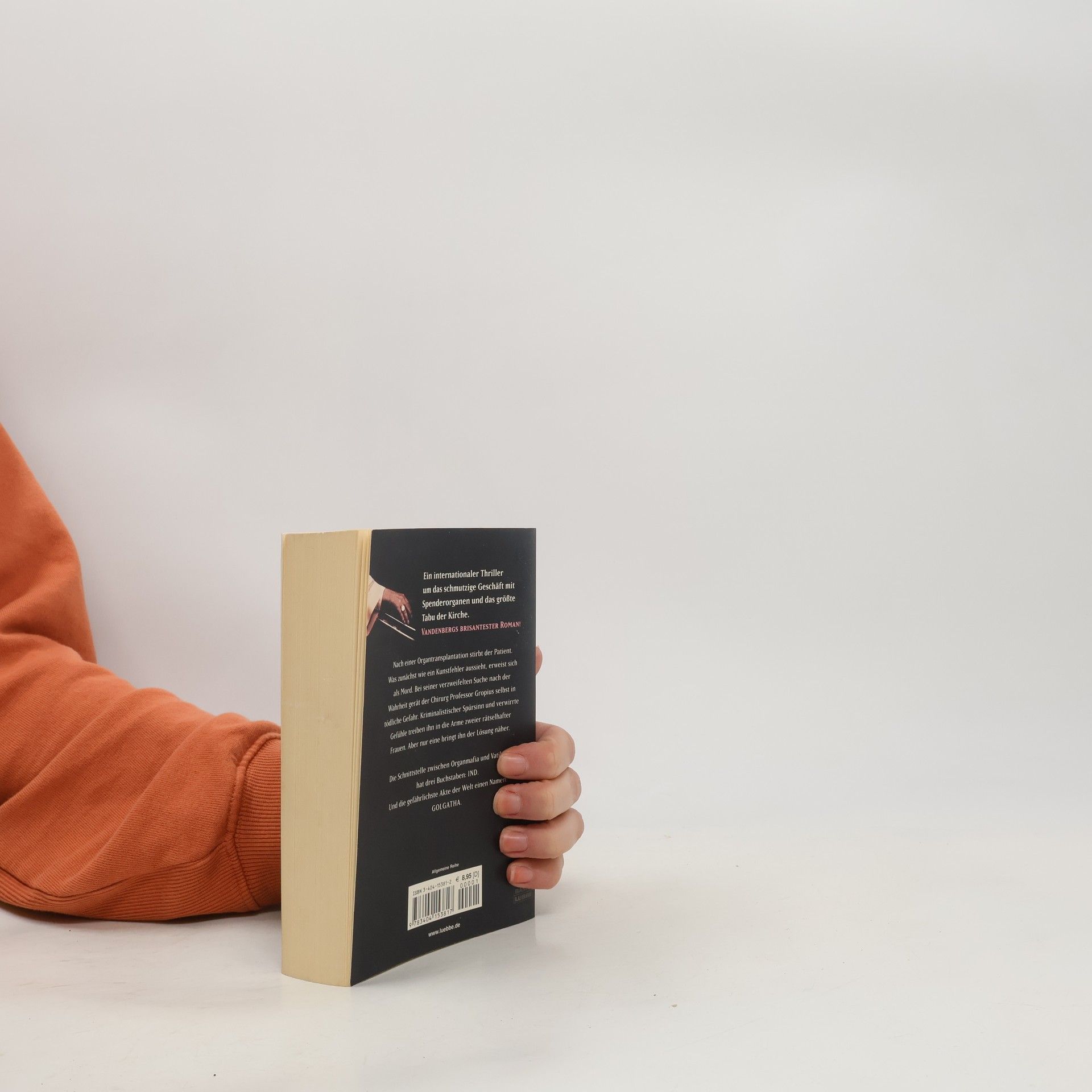 Nach einer Organtransplantation stirbt der Patient. Was zunächst wie ein Kunstfehler aussieht, erweist sich als Mord. Bei seiner verzweifelten Suche nach der Wahrheit gerät der Chirurg Professor Gropius selbst in tödliche Gefahr. Kriminalistischer Spürsinn und verwirrte Gefühle treiben ihn in die Arme zweier rätselhafter Frauen. Aber nur eine bringt ihn der Lösung näher. Die Schnittstelle zwischen Organmafia und Vatikan hat drei Buchstaben: IND. Und die gefährlichste Akte der Welt einen Namen: Golgatha.