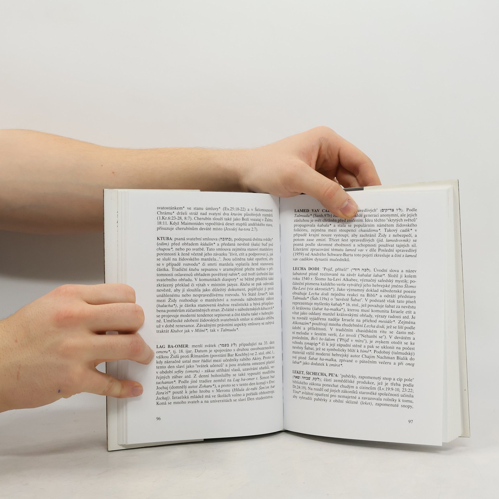 Encyklopedie izraelských autorů Gavri'ela Sivana a Ja'kova Newmana představuje první spolehlivou práci svého druhu v českém jazyce. Čtenáři se mohou v abecedně řazených a odkazy vzájemně propojených výkladových heslech seznámit v podstatě se všemi pojmy a skutečnostmi, nezbytnými pro pochopení a studium židovského náboženství, historie, tradice i současného života Židů v Izraeli i v diaspoře. Základní hebrejské pojmy encyklopedie uvádí jak v transkripci do latinky, tak i v hebrejském písmu. Kniha je vybavena slovníkem pojmů, rejstříkem a prvním systematickým návodem, jak postupovat při transkripci hebrejských slov do češtiny.