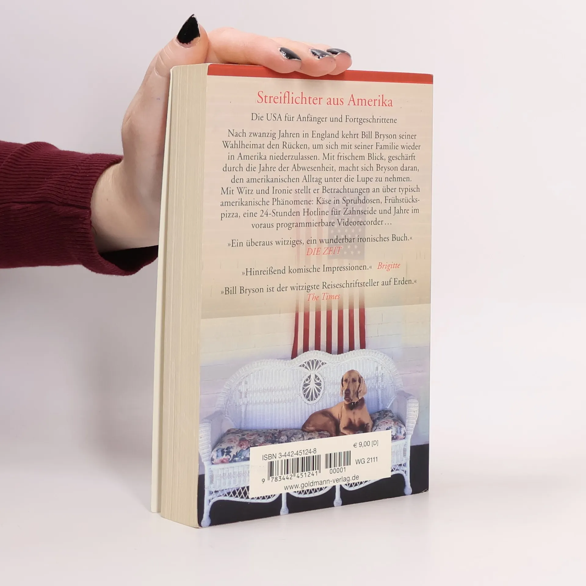 Nach zwanzig Jahren in England findet Bill Bryson, dass es nun genug sei. Er kehrt seiner Wahlheimat den Rücken, um sich mit seiner Familie wieder in Amerika zu etablieren. Mit frischem Blick, geschärft durch die Jahre der Abwesenheit, macht sich Bryson daran, den amerikanischen Alltag unter die Lupe zu nehmen. Sarkastisch und beißend, ironisch und witzig und dabei immer auch höchst informativ stellt er Betrachtungen an über typisch amerikanische Phänomene: Die Präsidentenwahl, Risiken und Nebenwirkungen überhöhten TV-Genusses oder gewisse kulinarische Traditionen. Aber auch die nostalgische Beschwörung verblasster Mythen – etwa Motels oder Highways – kommt dabei nicht zu kurz. Während es so manchen Irrwitz zu beklagen gibt, stehen dem amerikanischen Bürger doch eine Vielzahl komfortabler Nebensächlichkeiten zur Verfügung, die das Leben versüßen: Eine 24-Stunden-Hotline für Zahnseide, Jahre im voraus programmierbare Video-Recorder oder die gehobene Computervariante mit dem praktischen Getränketablett, das nur der unkundige als CD-Einzug interpretiert.