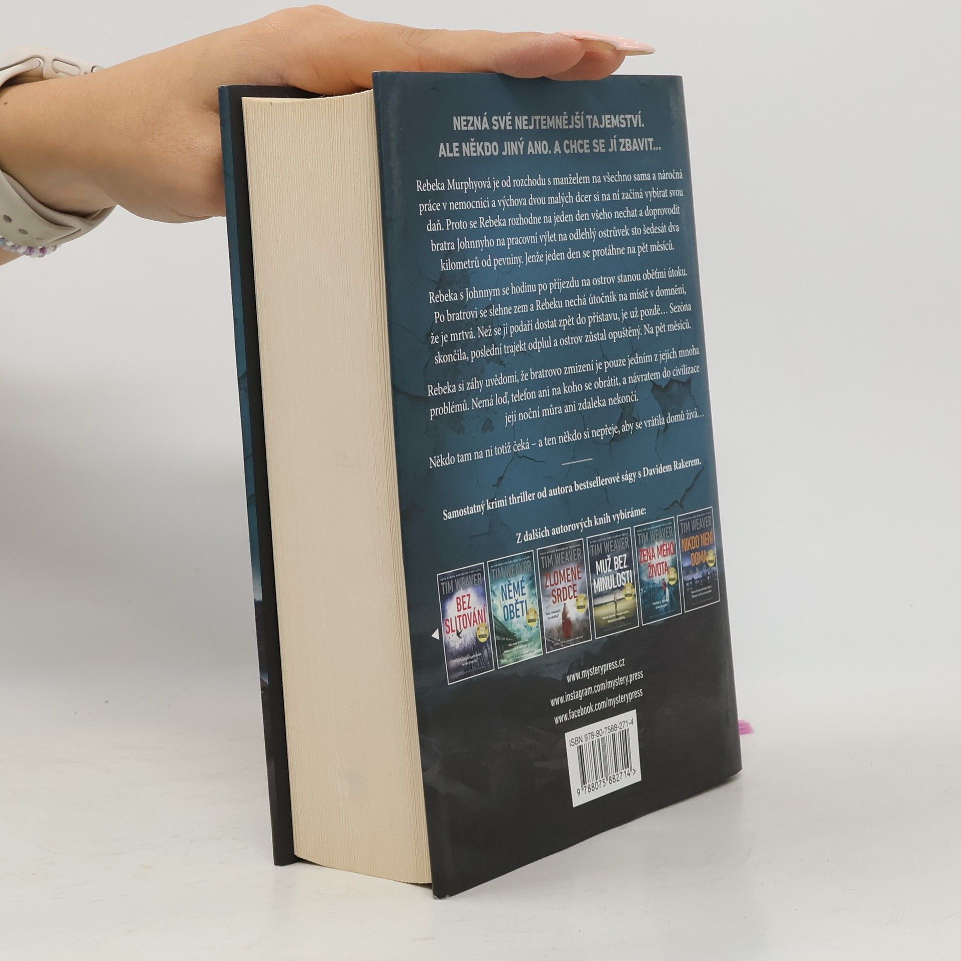 NEZNÁ SVÉ NEJTEMNĚJŠÍ TAJEMSTVÍ. ALE NĚKDO JINÝ ANO. A CHCE SE JÍ ZBAVIT… Rebeka Murphyová je od rozchodu s manželem na všechno sama a náročná práce v nemocnici a výchova dvou malých dcer si na ní začíná vybírat svou daň. Proto se Rebeka rozhodne na jeden den všeho nechat a doprovodit bratra Johnnyho na pracovní výlet na odlehlý ostrůvek sto šedesát dva kilometrů od pevniny. Jenže jeden den se protáhne na pět měsíců. Rebeka s Johnnym se hodinu po příjezdu na ostrov stanou oběťmi útoku. Po bratrovi se slehne zem a Rebeku nechá útočník na místě v domnění, že je mrtvá. Než se jí podaří dostat zpět do přístavu, je už pozdě… Sezóna skončila, poslední trajekt odplul a ostrov zůstal opuštěný. Na pět měsíců. Rebeka si záhy uvědomí, že bratrovo zmizení je pouze jedním z jejích mnoha problémů. Nemá loď, telefon ani na koho se obrátit, a návratem do civilizace její noční můra ani zdaleka nekončí. Někdo tam na ni totiž čeká – a ten někdo si nepřeje, aby se vrátila domů živá… _____ Samostatný krimi thriller od autora bestsellerové ságy s Davidem Rakerem.