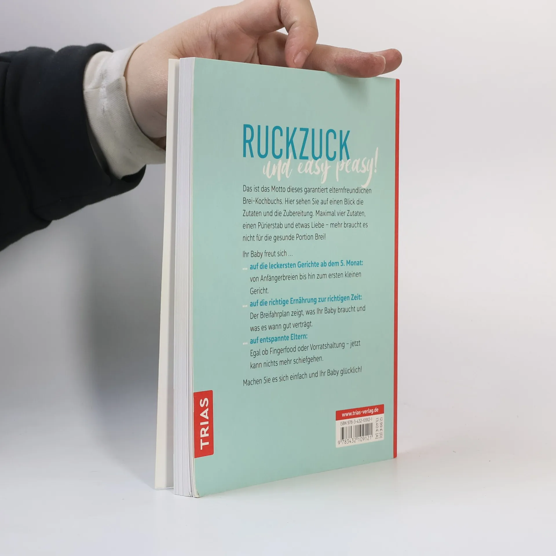 Ruckzuck und easy peasy! Das ist das Motto dieses garantiert elternfreundlichen Brei-Kochbuchs. Hier sehen Sie auf einen Blick die Zutaten und die Zubereitung. Maximal vier Zutaten, einen Pürierstab und etwas Liebe. Mehr braucht es nicht für die gesunde Portion Brei! Ihr Baby freut sich... - ... auf die leckersten Gerichte ab dem 6. Monat: von Anfängerbreien bis hin zum ersten kleinen Gericht. - ... auf die richtige Ernährung zur richtigen Zeit: Der Breifahrplan zeigt, was Ihr Baby braucht und was es wann gut verträgt. - ... auf entspannte Eltern: Egal ob Fingerfood oder Vorratshaltung - jetzt kann nichts mehr schiefgehen. Machen Sie es sich einfach und Ihr Baby glücklich!