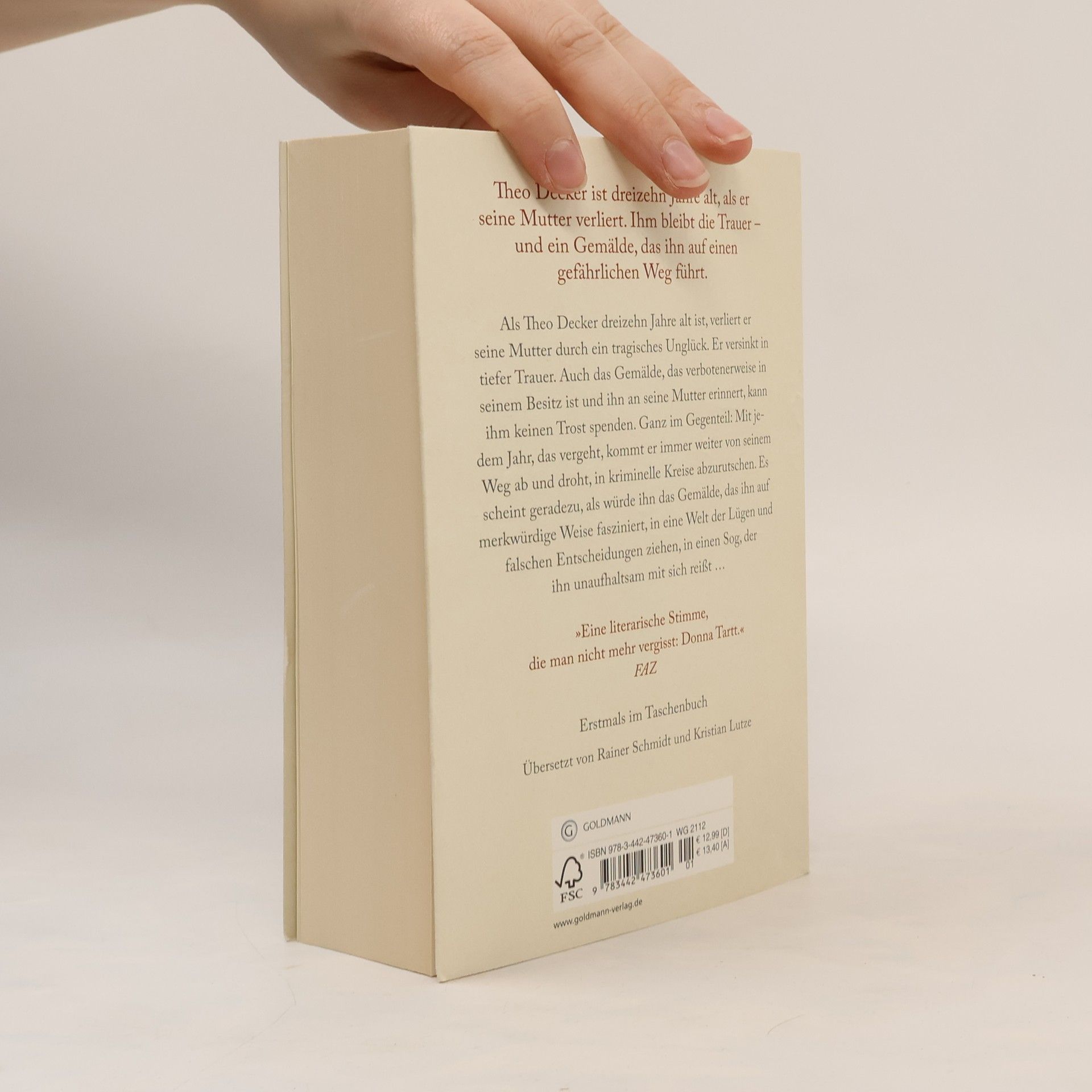 Als Theo Decker dreizehn Jahre alt ist, verliert er seine Mutter durch ein tragisches Unglück. Er versinkt in tiefer Trauer. Auch das Gemälde, das verbotenerweise in seinem Besitz ist und ihn an seine Mutter erinnert, kann ihm keinen Trost spenden. Ganz im Gegenteil: Mit jedem Jahr, das vergeht, kommt er immer weiter von seinem Weg ab und droht, in kriminelle Kreise abzurutschen. Es scheint geradezu, als würde ihn das Gemälde, das ihn auf merkwürdige Weise fasziniert, in eine Welt der Lügen und falschen Entscheidungen ziehen, in einen Sog, der ihn unaufhaltsam mit sich reißt ...