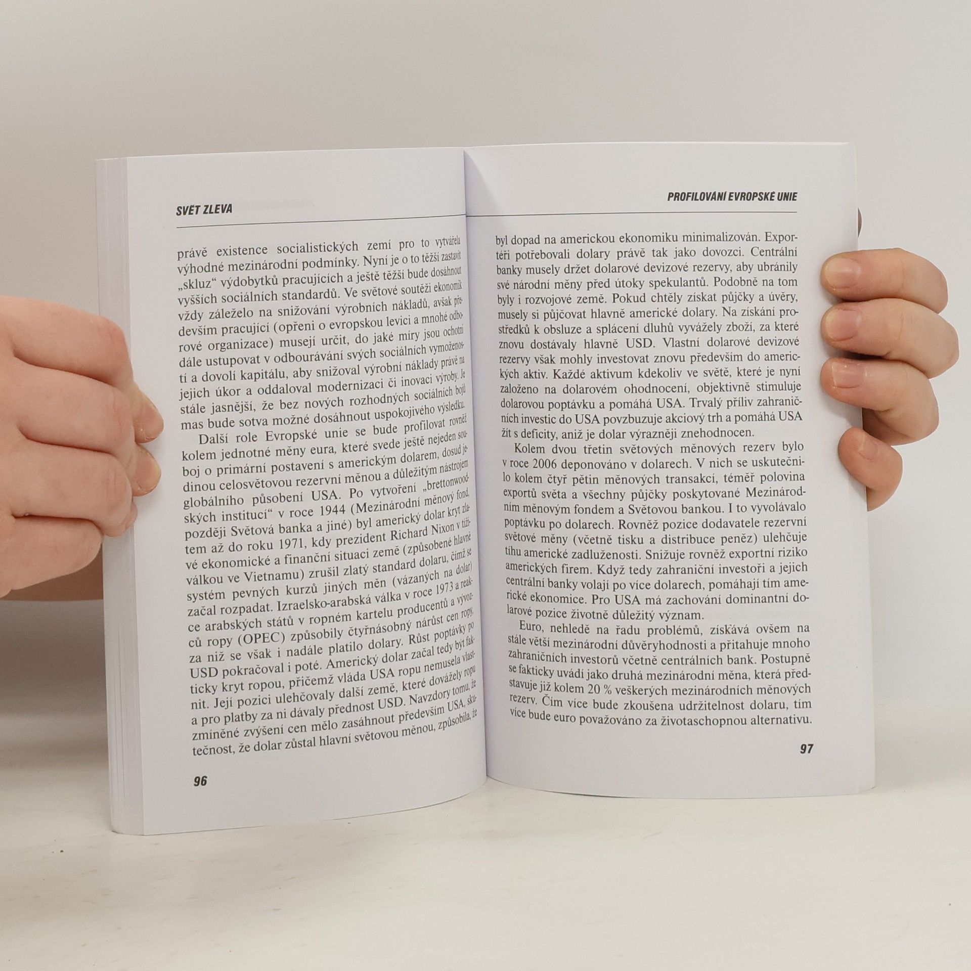 Charakteristika současné etapy vývoje lidstva z hlediska demografického, hospodářsko-sociálního, zahraničněpolitického, vojensko-strategického, geopolitického atd. Proces ustavování nového impéria pod vedením USA. Globální kontrola světa. Polemika s hlavními zásadami zahraniční politiky USA, která, podle autorů, preferuje silové řešení problémů. Úloha OSN jako vrcholného garanta mezinárodního práva. Místo EU v globálních vztazích. Současný stav a perspektivy NATO. Úloha a programové teze moderní levice Současný stav světa a hlavní společenské problémy naší doby z pohledu evropské levice. Popis a charakteristika společnosti v éře globalizace, pojmenování nejžhavějších problémů současnosti (i rizik budoucnosti) a návrhy na jejich řešení