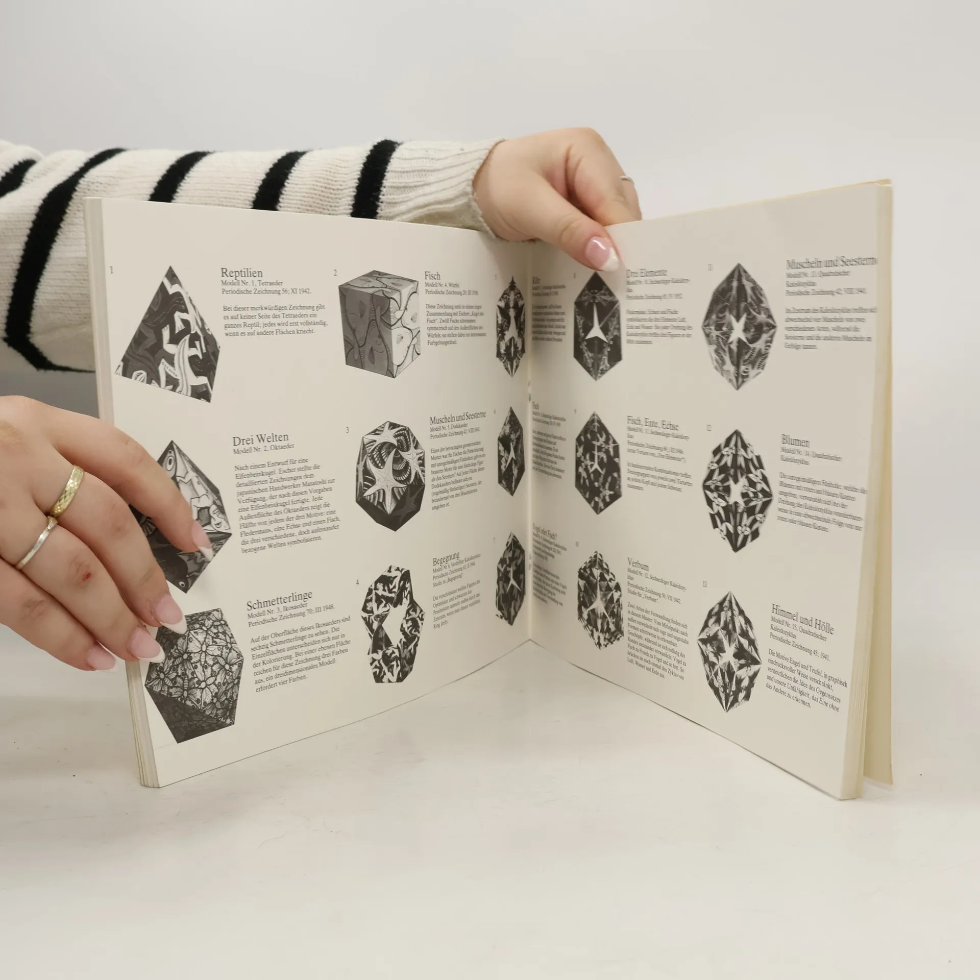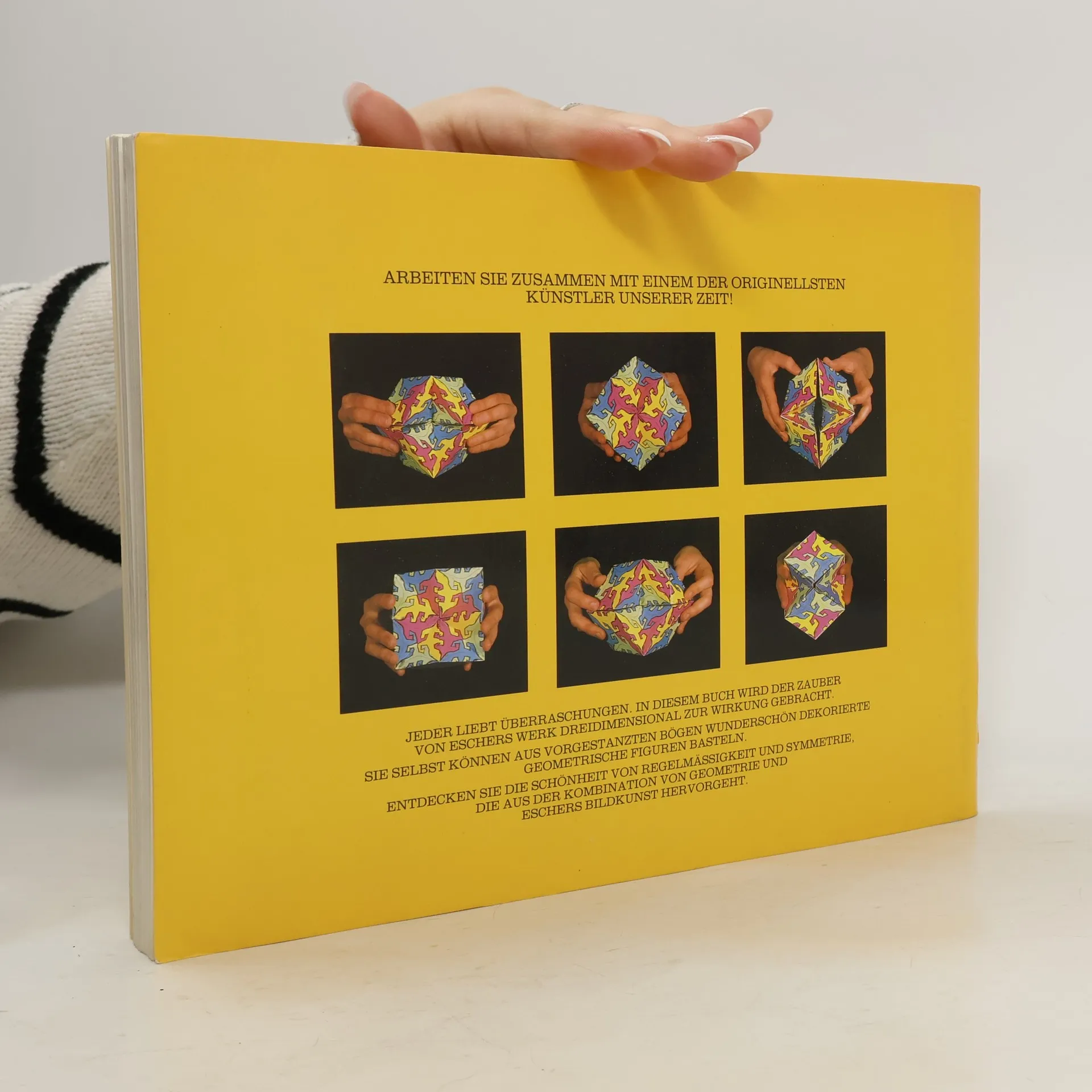 Geometrische Figuren selber basteln Jeder liebt Überraschungen. In diesem Buch wird der Zauber von Eschers Werk dreidimensional zur Wirkung gebracht. Sie selbst können aus vorgestanzten Bögen wunderschön dekorierte geometrische Figuren basteln. Entdecken Sie die Schönheit von Regelmäßigkeit und Symmetrie, die aus der Kombination von Geometrie und Eschers Bildkunst hervorgeht.