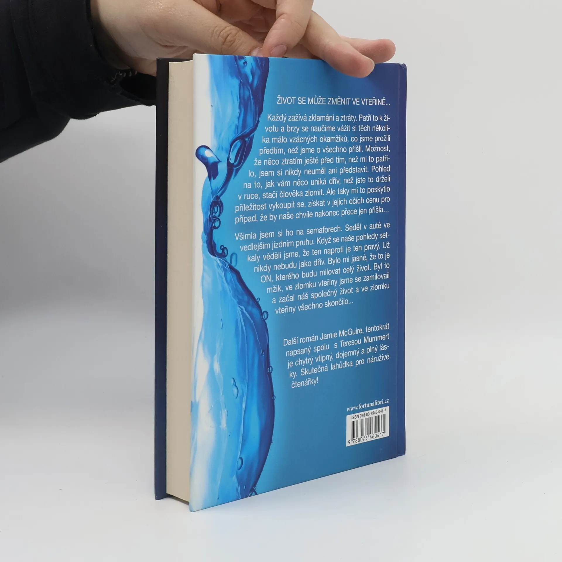 Život se může změnit ve vteřině ... Každý zažívá zklamání a ztráty. Patří to k životu a brzy se naučíme vážit si těch několika málo vzácných okamžiků, co jsme prožili předtím, než jsme o všechno přišli. Možnost, že něco ztratím ještě před tím, než mi to patřilo, jsem si nikdy neuměl ani představit. Pohled na to, jak vám něco uniká dřív, než jste to drželi v ruce, stačí člověka zlomit. Ale taky mi to poskytlo příležitost vykoupit se, získat v jejích očích cenu pro případ, že by naše chvíle nakonec přece jen přišla… Všimla jsem si ho na semaforech. Seděl v autě ve vedlejším jízdním pruhu. Když se naše pohledy setkaly, věděli jsme, že ten naproti je ten pravý. Už nikdy nebudu jako dřív. Bylo mi jasné, že to je ON, kterého budu milovat celý život. Byl to mžik, ve zlomku vteřiny jsme se zamilovali a začal náš společný život a ve zlomku vteřiny všechno skončilo ... Další román Jamie McGuire, tentokrát napsaný spolu s Teresou Mummert je chytrý vtipný, dojemný a plný lásky. Skutečná lahůdka pro náruživé čtenářky!