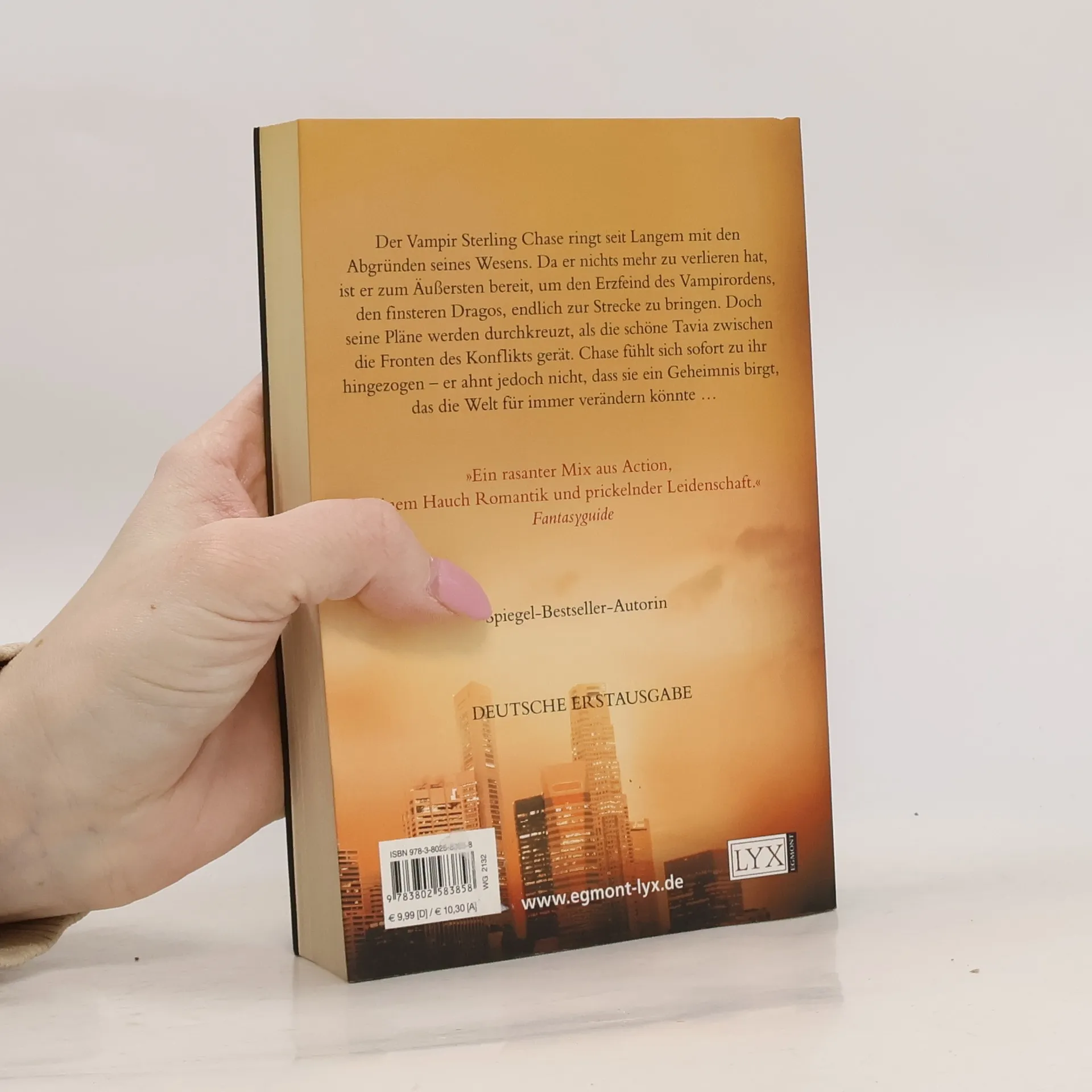 Der Vampir Sterling Chase ringt seit Langem mit den Abgründen seines Wesens. Da er nichts mehr zu verlieren hat, ist er zum Äußersten bereit, um den Erzfeind des Vampirordens, den finsteren Dragos, endlich zur Strecke zu bringen. Doch seine Pläne werden durchkreuzt, als die schöne Tavia zwischen die Fronten des Konflikts gerät. Chase fühlt sich sofort zu ihr hingezogen - er ahnt jedoch nicht, dass sie ein Geheimnis birgt, das die Welt für immer verändern könnte...